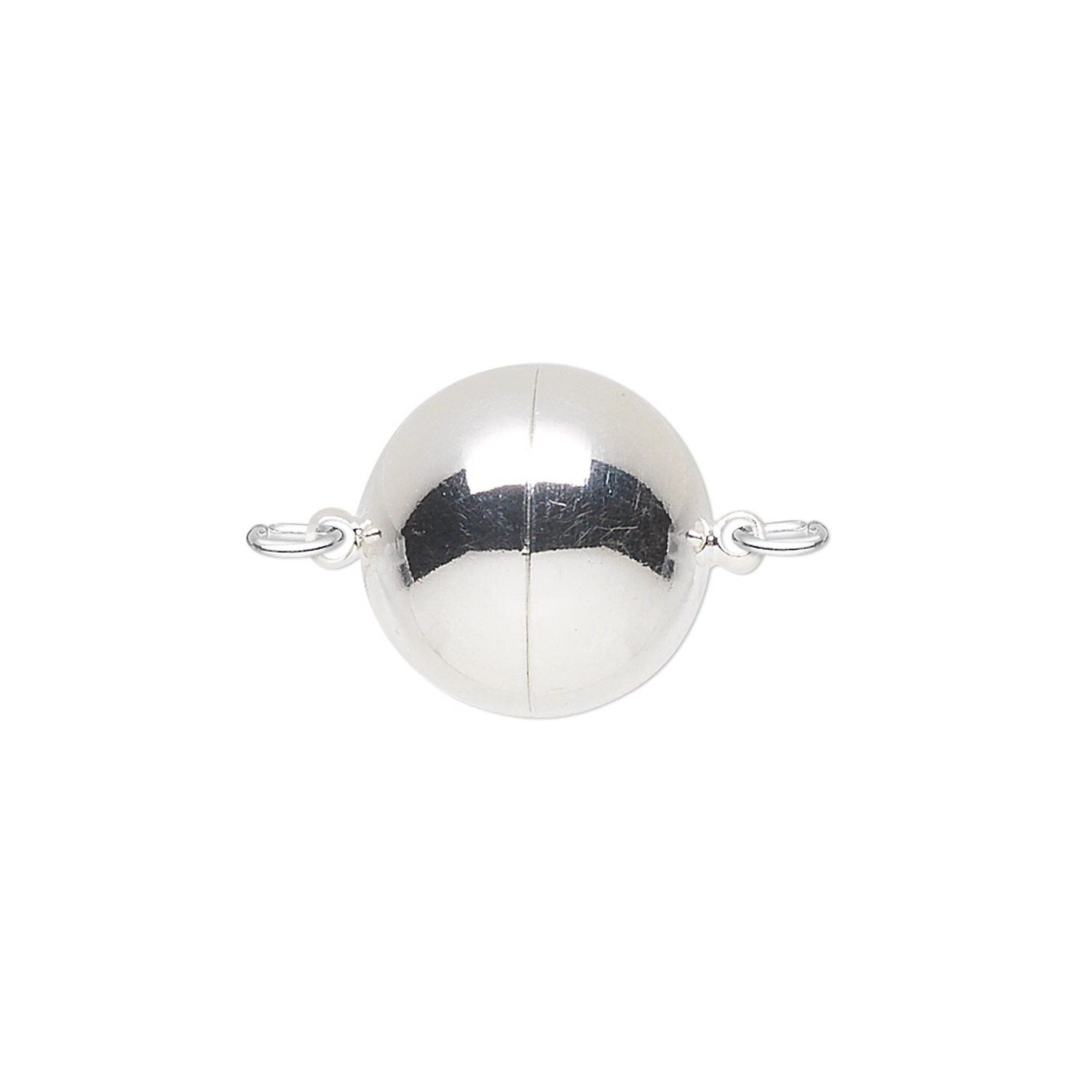 Clasp magnetic 1pkg1 silver-plated, 14mm round, copper 1-strand