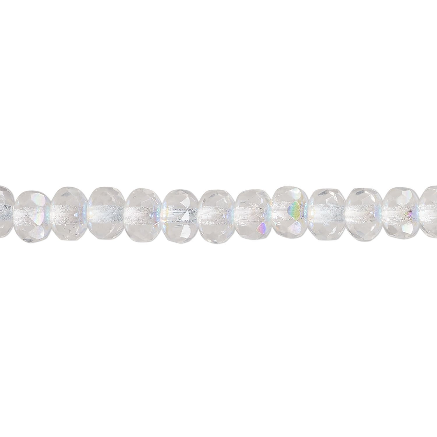 Bead, Czech fire-polished glass, clear AB, 5x4mm faceted rondelle. Sold per 15-1/2" to 16" strand.