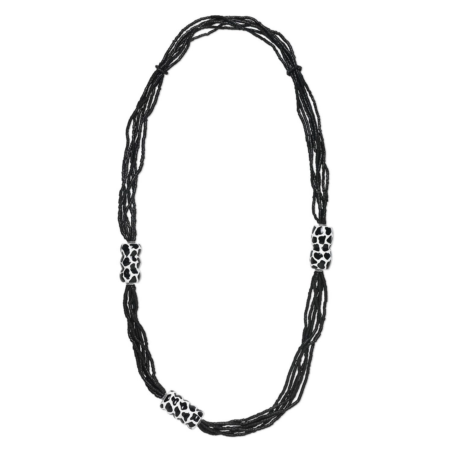 Necklace, Taiwanese cheesewood and coconut shell, black and white, 40x22mm-44x22mm carved round tube, 42-inch continuous loop. Sold individually.