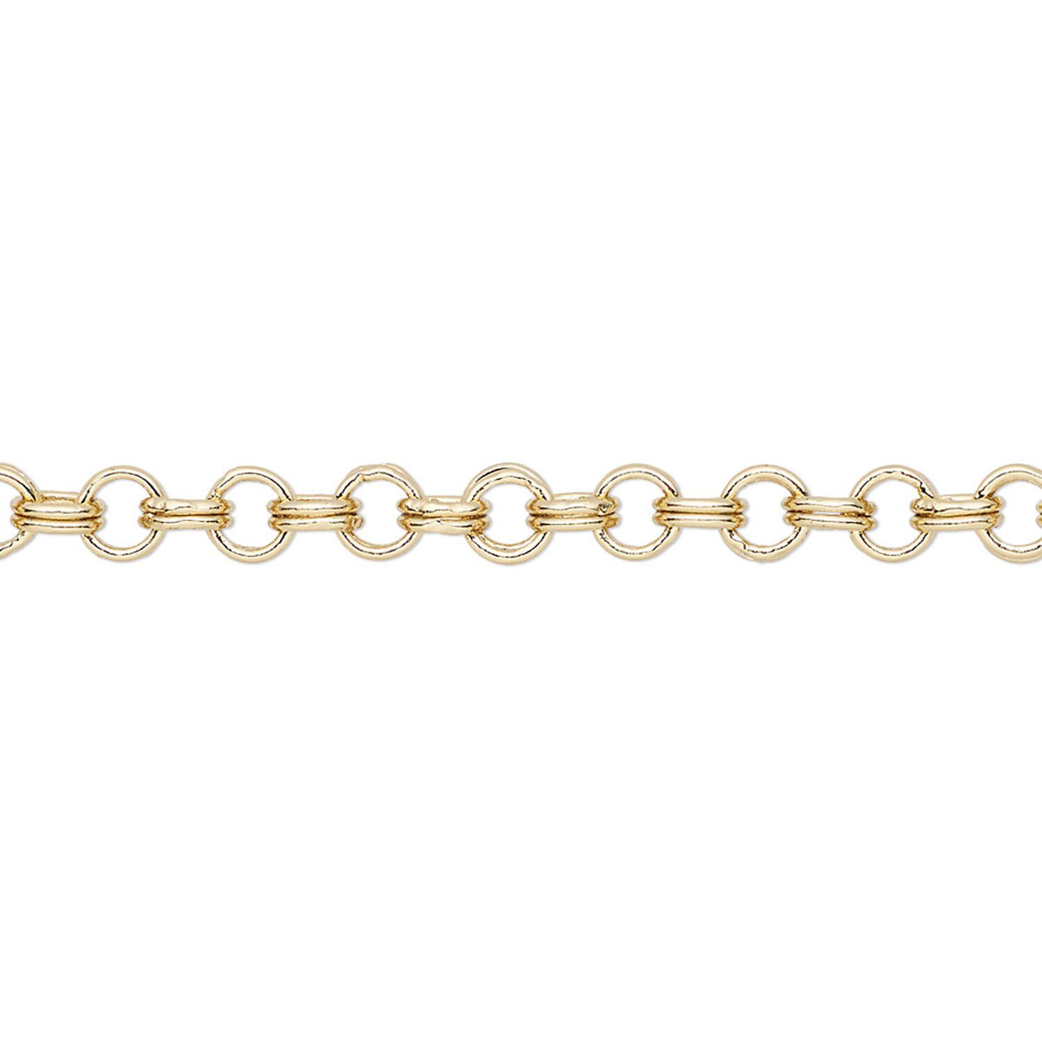 Chain 1pkg1 cable, 4mm double round, gold-finished brass 50 foot unfinished