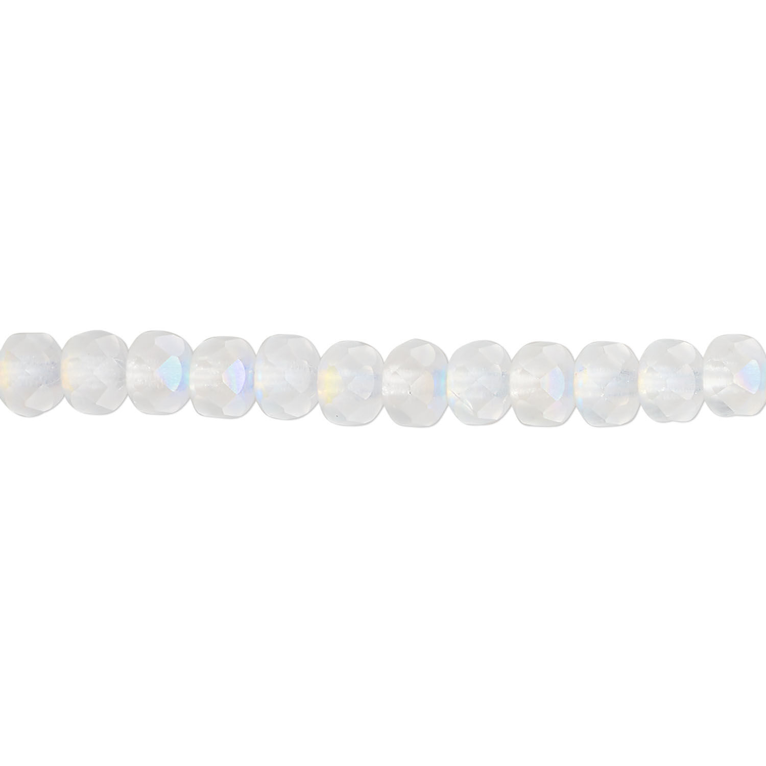 Bead, Czech fire-polished glass, matte opal AB, 5x4mm faceted rondelle. Sold per 15-1/2" to 16" strand.