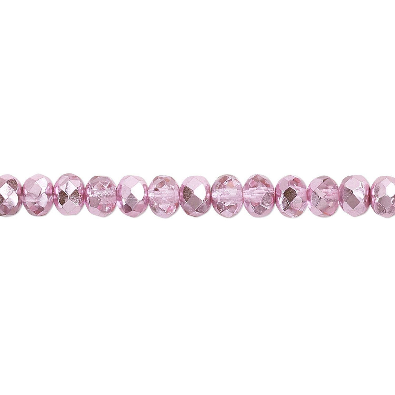 Bead, Czech fire-polished glass, metallic bubblegum, 5x4mm faceted rondelle. Sold per pkg of 1,200 (1 mass).