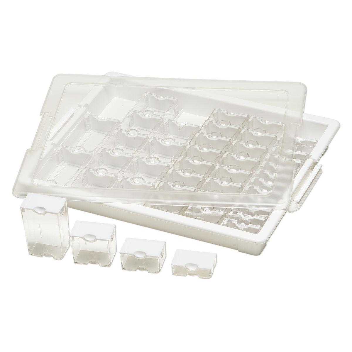 Organizer, Assorted Bead Storage Tray™, Bead Storage Solutions™, plastic, clear and opaque off-white, 13-3/4 x 10-1/2 x 2 inches. Sold per 45-piece set.