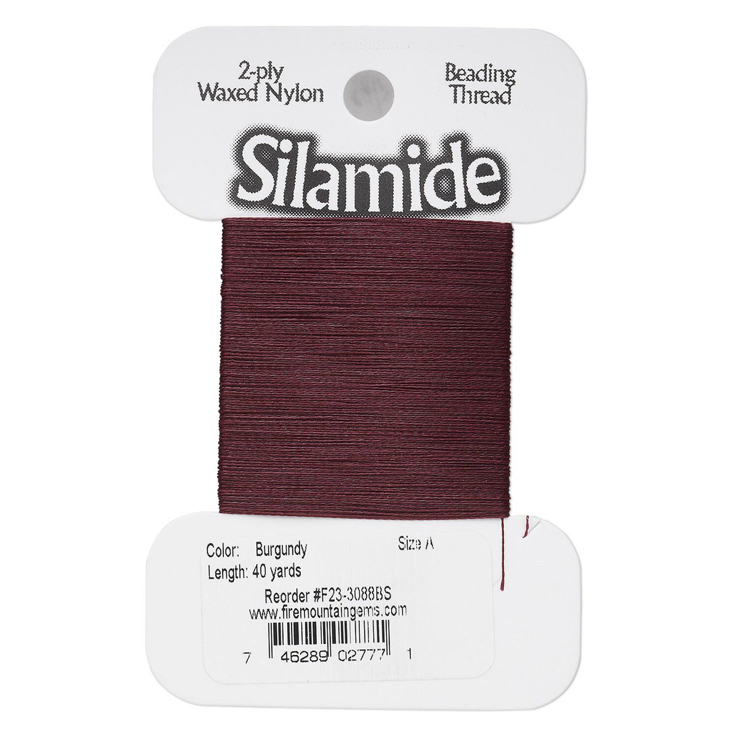 Silamide thread is a twisted, two-ply waxed nylon beading thread with supple strength, resilience and colorfastness. It's a leading favorite among top designers, ideal for peyote stitch, brick stitch, loom weaving and beads with small holes. Color may vary from dye lot to dye lot. Thread tensile strength is approximately 4 pounds, 4 ounces.