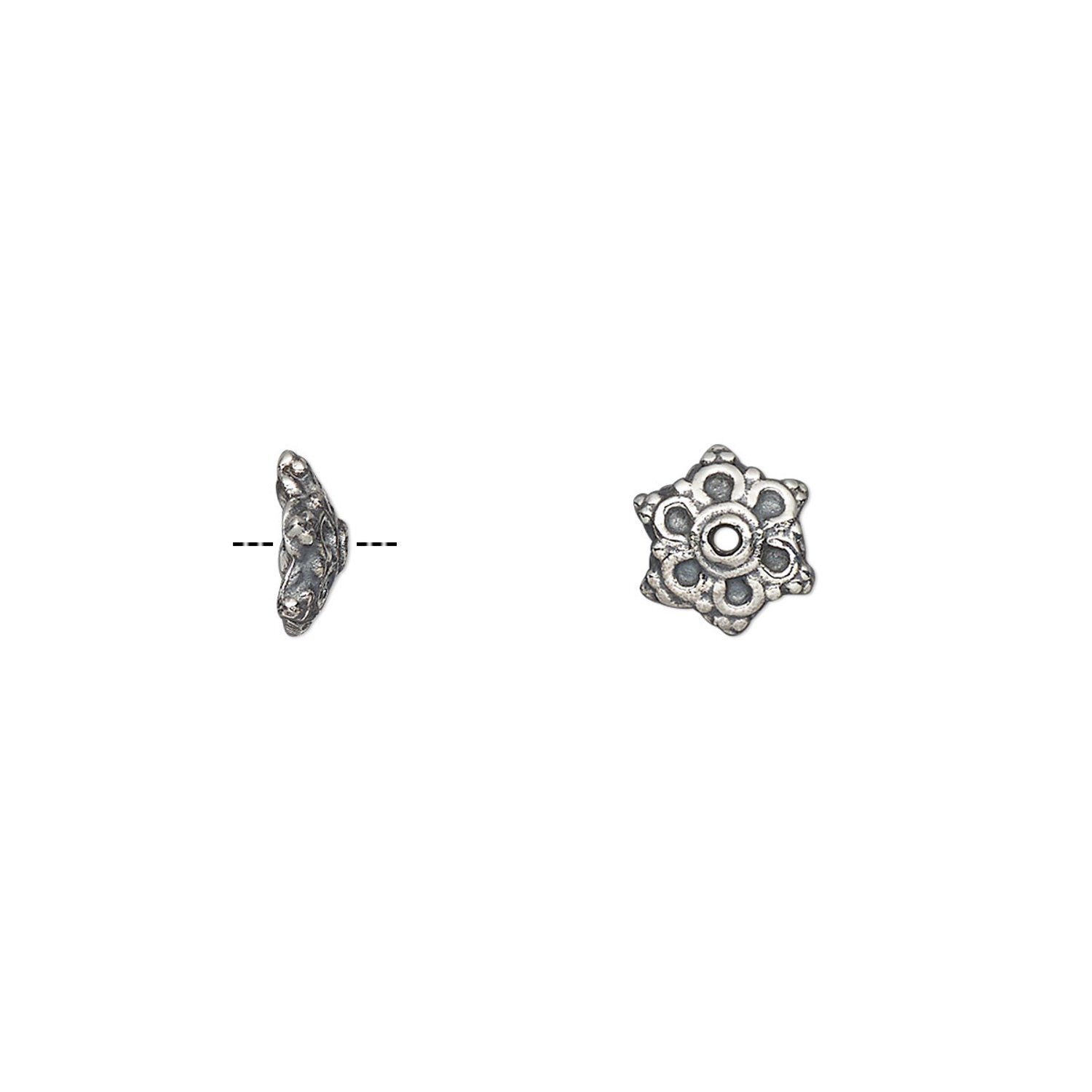 Beautifully handcrafted antiqued sterling silver bead caps add interest to round beads. Granulated designs are formed by placing tiny uniform ball shapes into precision patterns, heat fusing them onto the surface, then carefully creating an antiqued and polished finish. Handmade bead caps may vary slightly in shape and size.