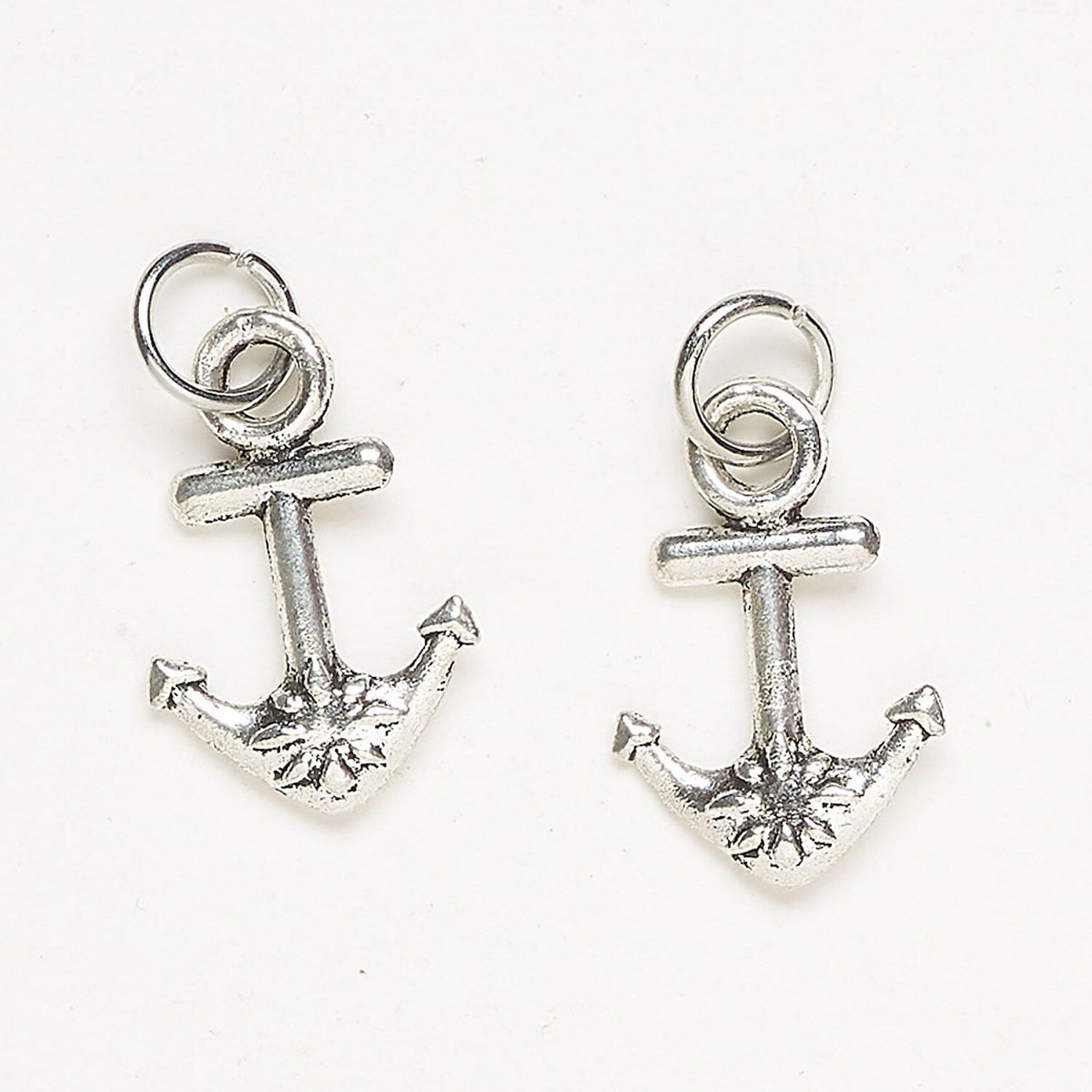 Charm, steel, pkg/2, silver finish, 20x13mm-21x14mm double-sided anchor.