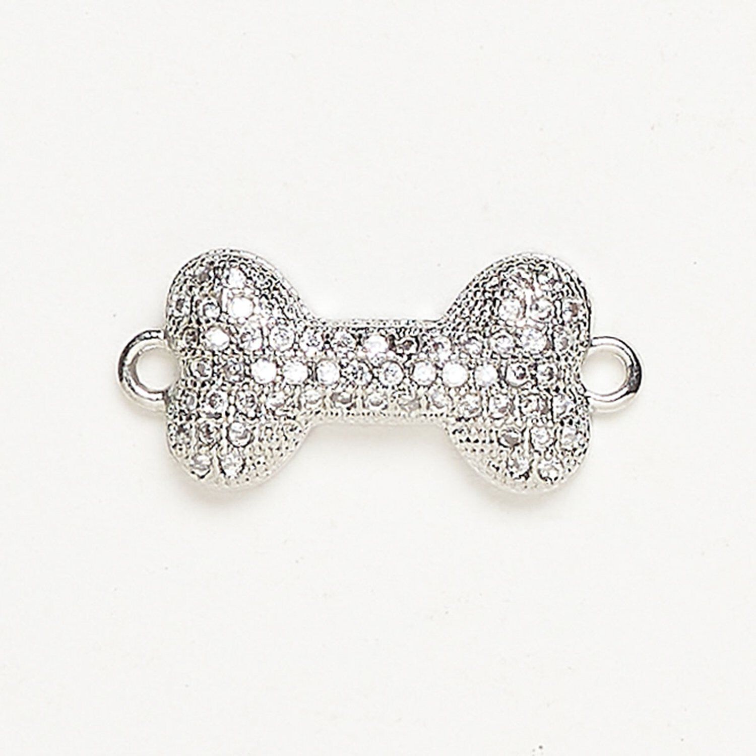 Link, "pewter" (zinc-based alloy) and glass, pkg/1, silver finish and clear, 20x9mm dog bone.
