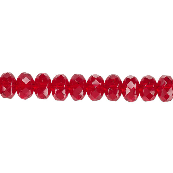 Bead, Czech fire-polished glass, ruby red, 7x5mm faceted rondelle. Sold per 15-1/2" to 16" strand.