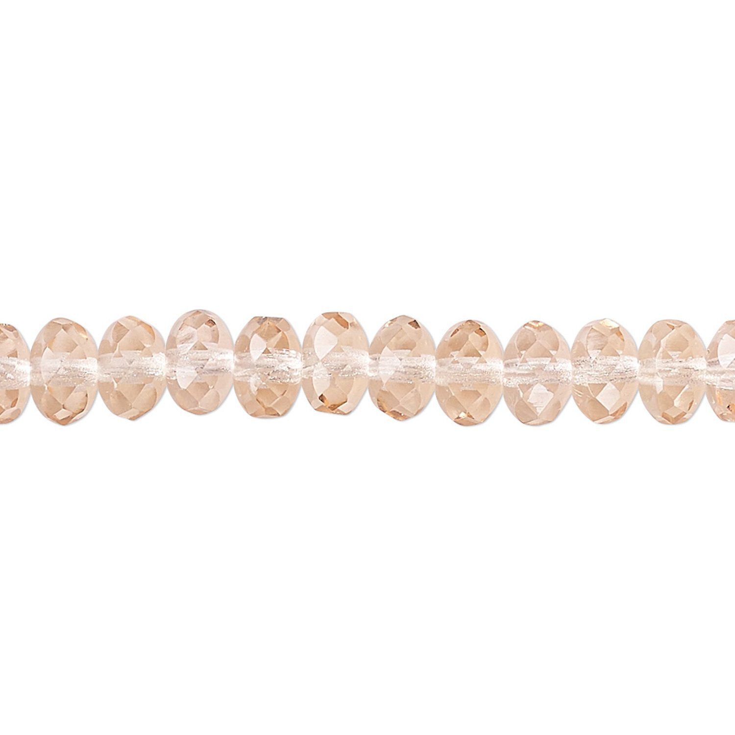 Bead, Czech fire-polished glass, light rose, 7x5mm faceted rondelle. Sold per 15-1/2" to 16" strand.