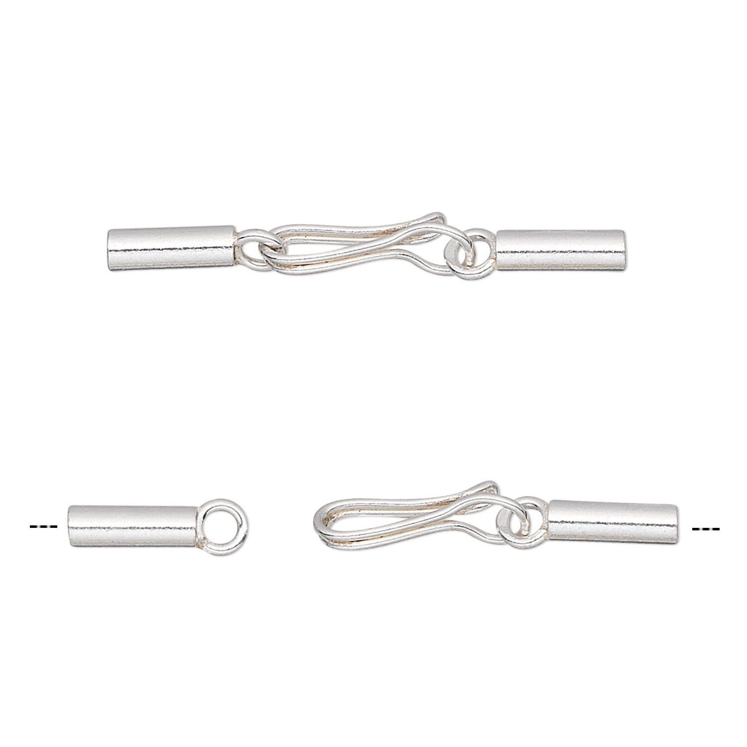 Clasp hook&eye 1pkg1 sterling silver, 30x3.5mm / fits 2mm cord, 1-strand