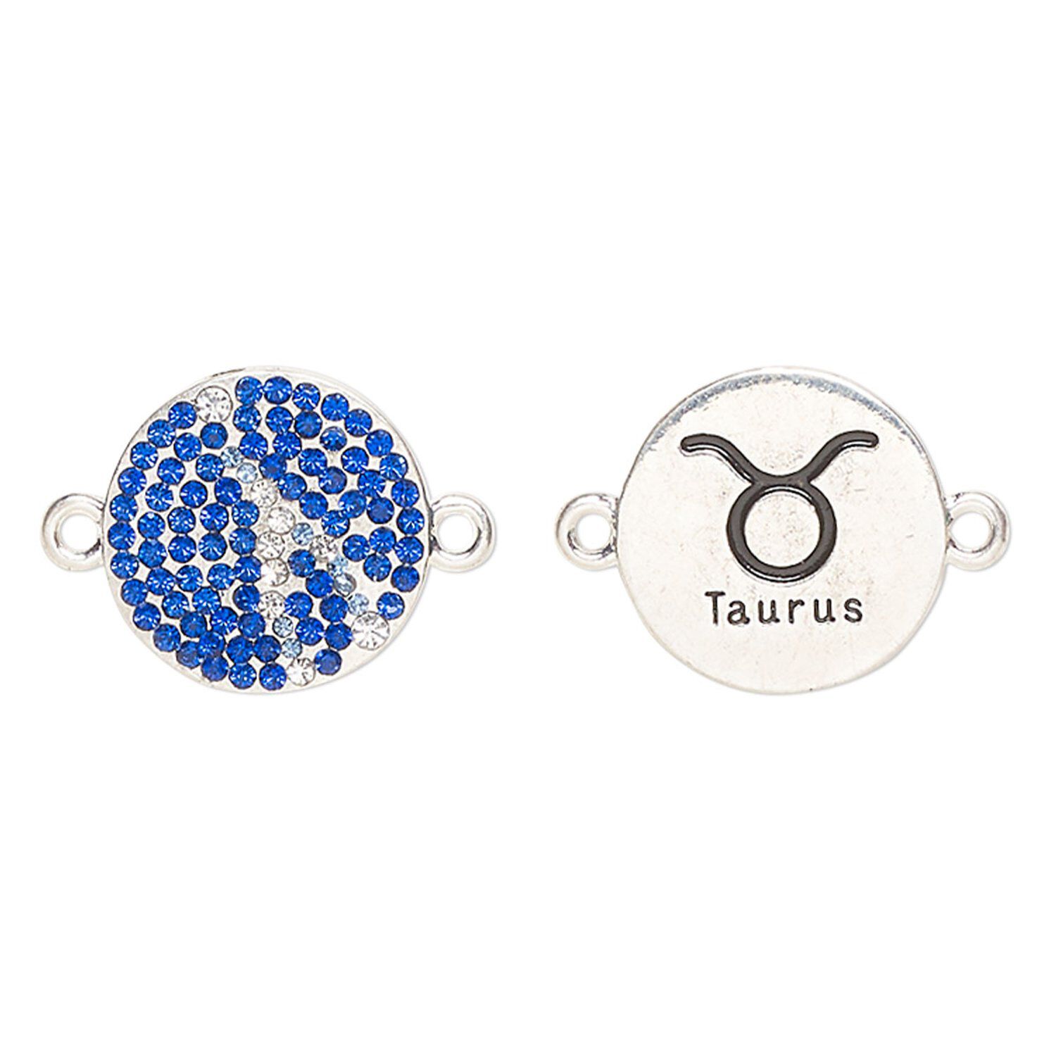 Link, "pewter" (zinc-based alloy)/enamel/cubic zirconia, pkg/1, antique silver finish and mixed colors, 20mm round 2-sided with "Taurus" and zodiac symbol.