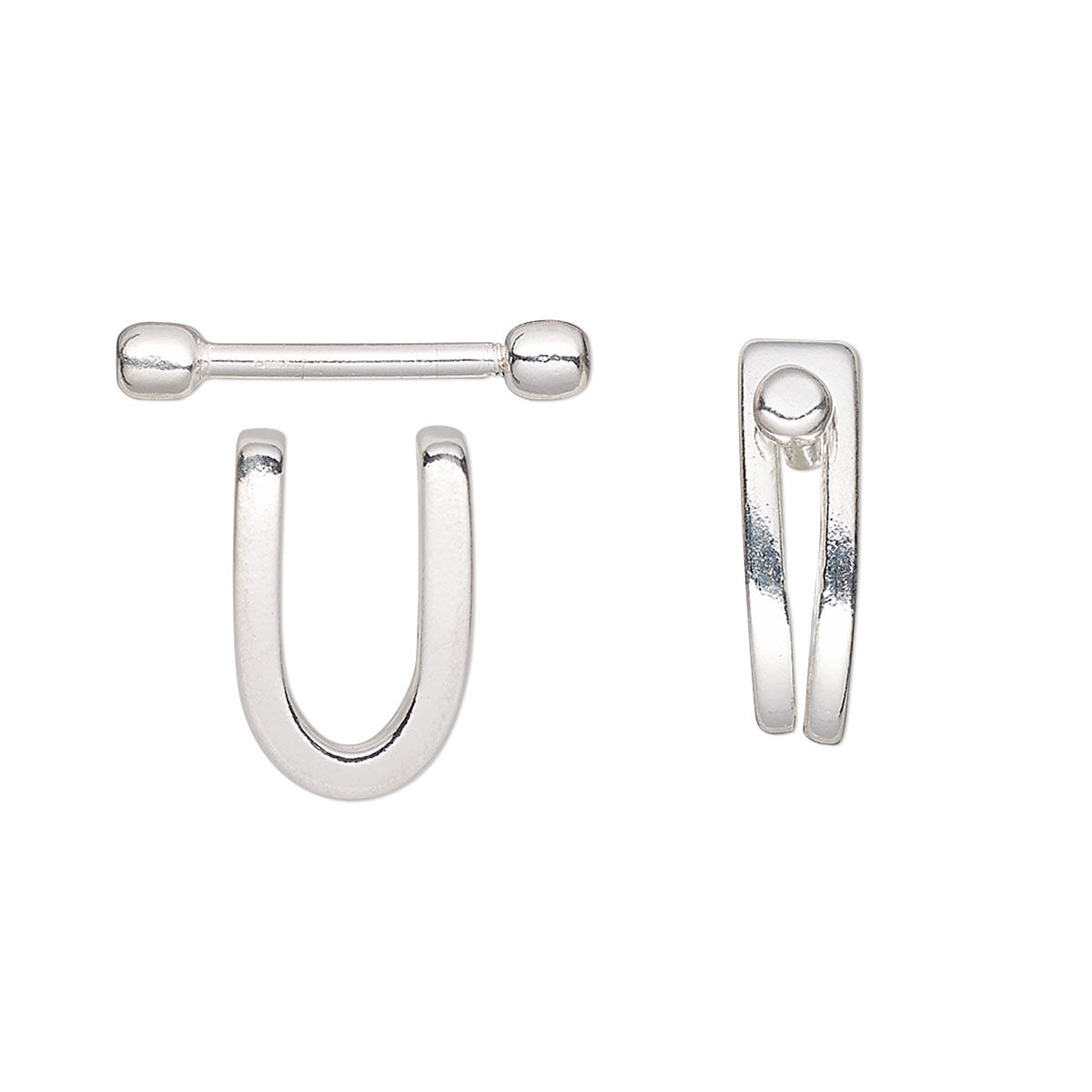 Bail, sterling silver, 15x10x5mm horseshoe with 1.25mm wide bar and 9mm grip length, 5.25mm inside diameter. Sold individually.