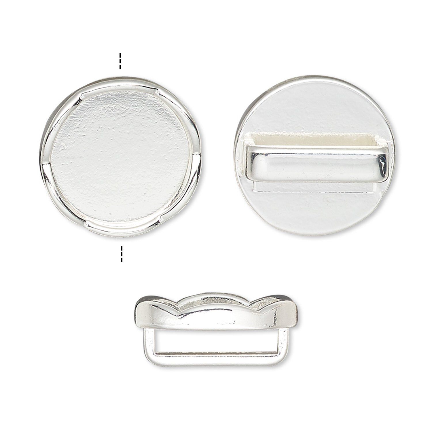 Slide, silver-finished "pewter" (zinc-based alloy), 17mm round with scalloped edge and 14mm round setting, 12.5x2.5mm hole. Sold per pkg of 6.