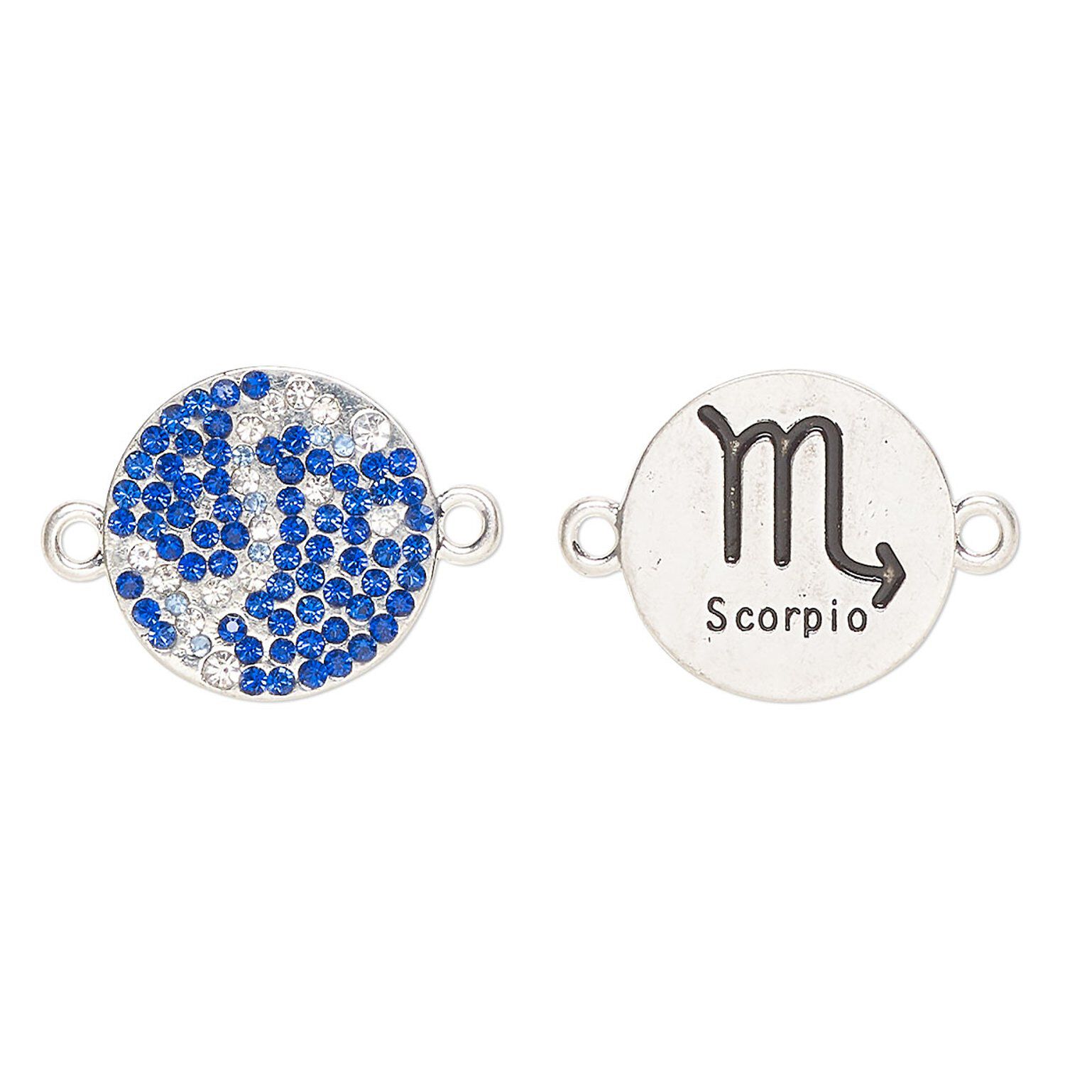 Link, "pewter" (zinc-based alloy)/enamel/cubic zirconia, pkg/1, antique silver finish and mixed colors, 20mm round 2-sided with "Scorpio" and zodiac symbol.