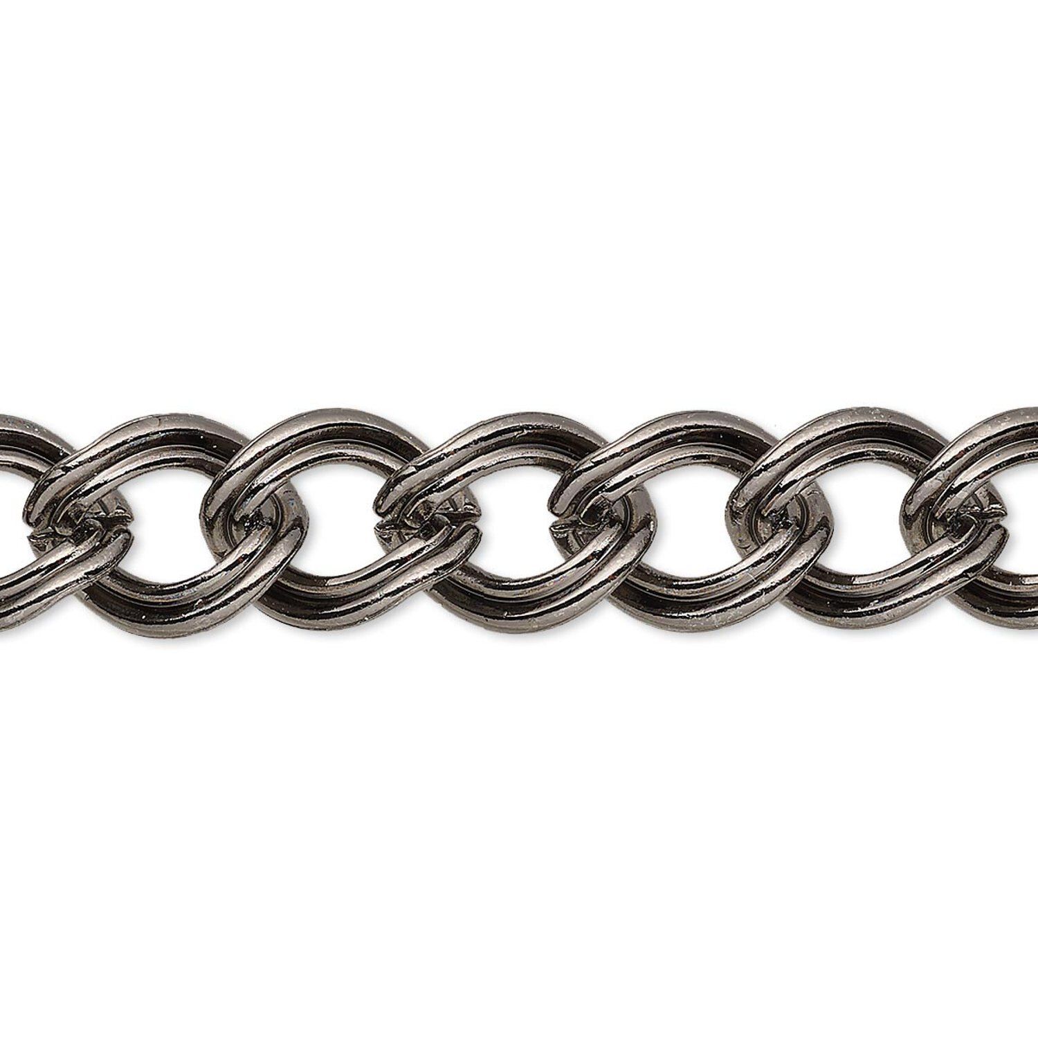 Brass double curb chain features open links and with an ever-popular gunmetal plating--ideal for designing affordable styles.