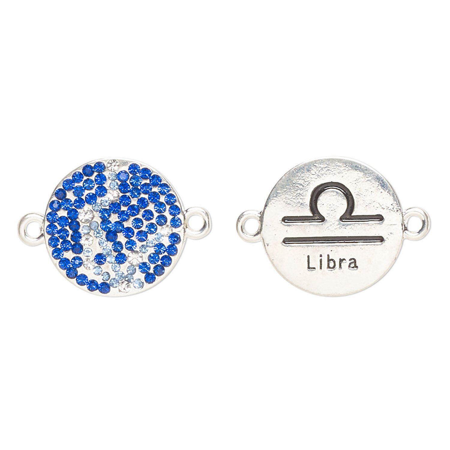 Link, "pewter" (zinc-based alloy)/enamel/cubic zirconia, pkg/1, antique silver finish and mixed colors, 20mm round 2-sided with "Libra" and zodiac symbol.
