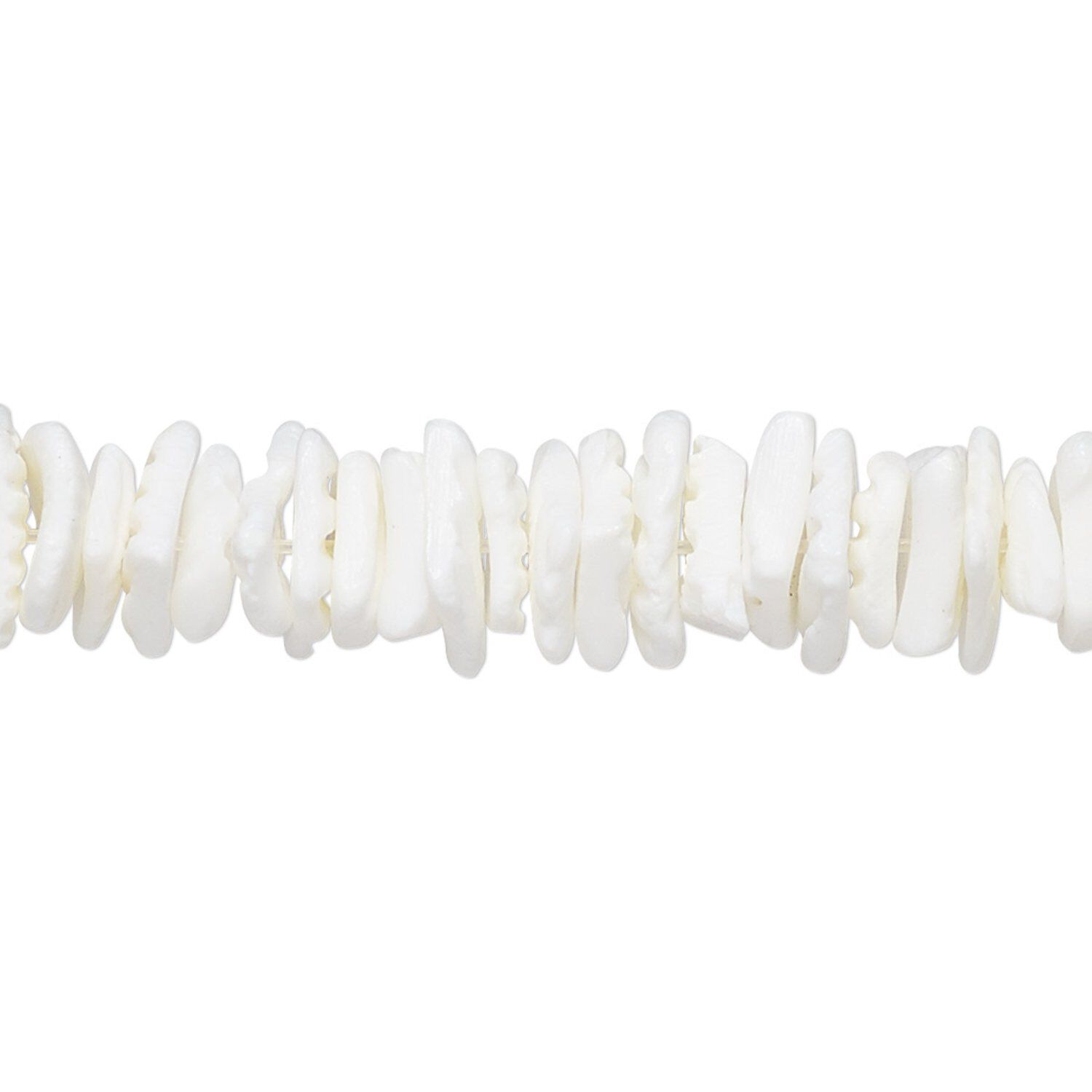 Bead, litub shell (natural), white, medium chip, Mohs hardness 3-1/2. Sold per 15-1/2" to 16" strand.