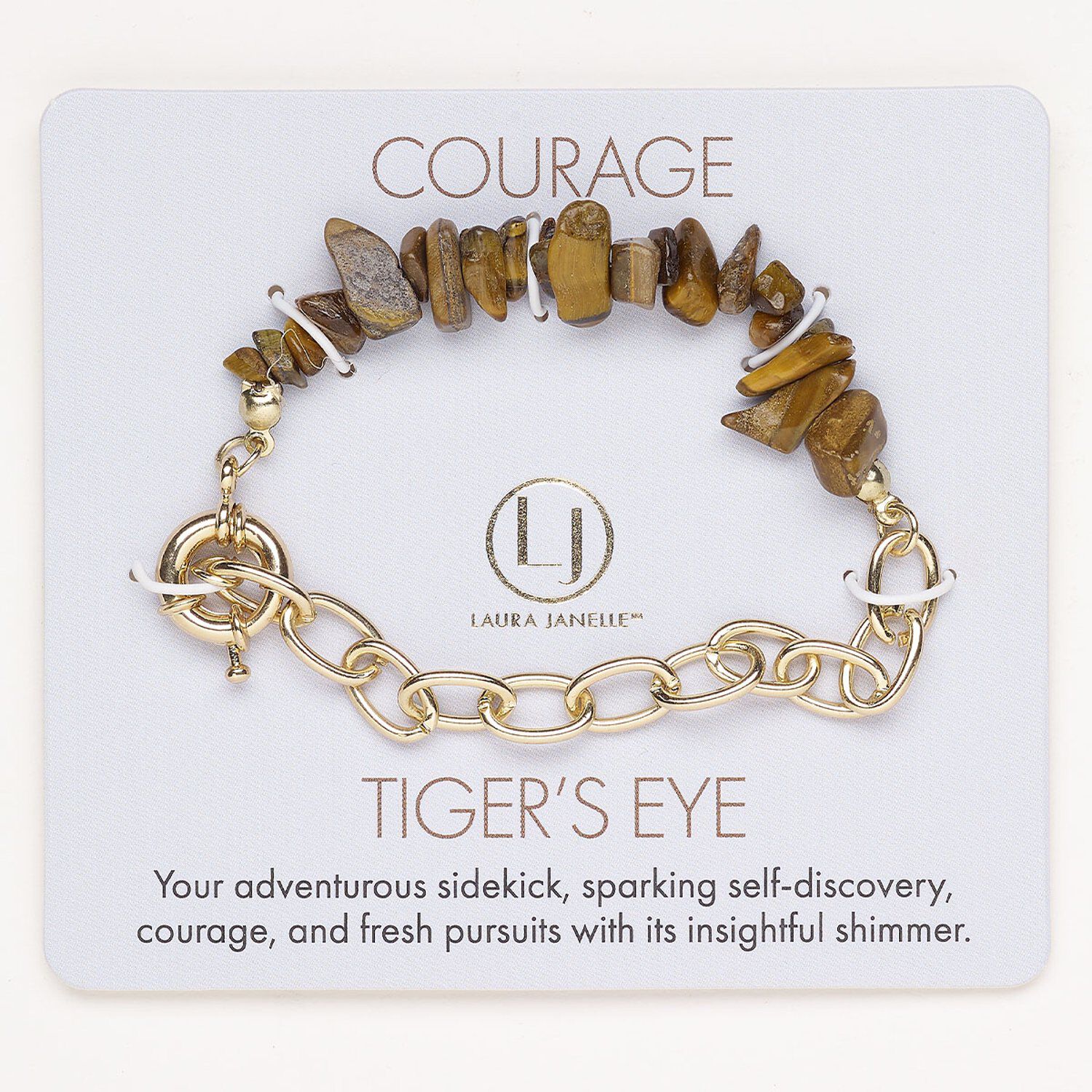 Bracelet steel tigereye 1pk springring clasp, gold finish natural 7 inch