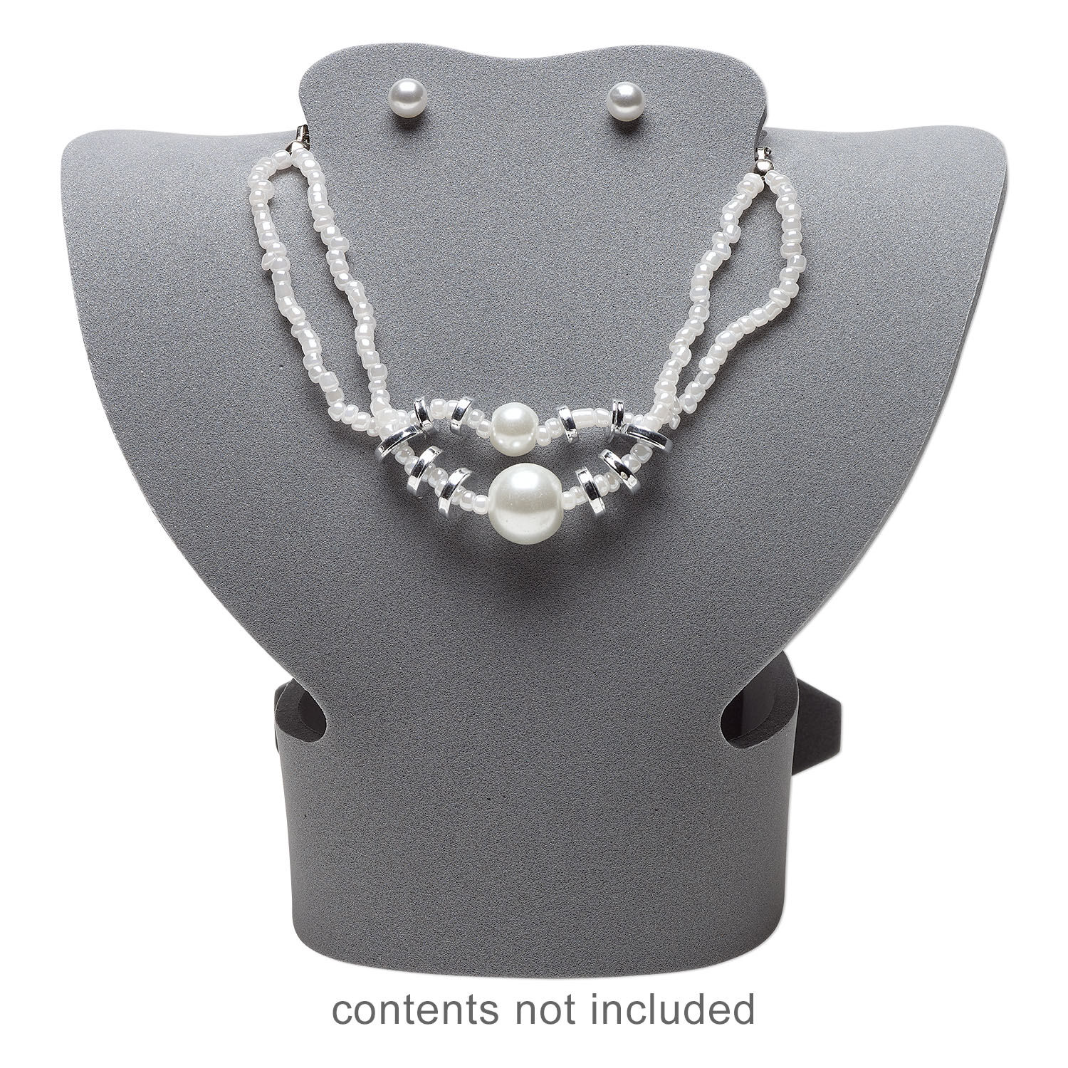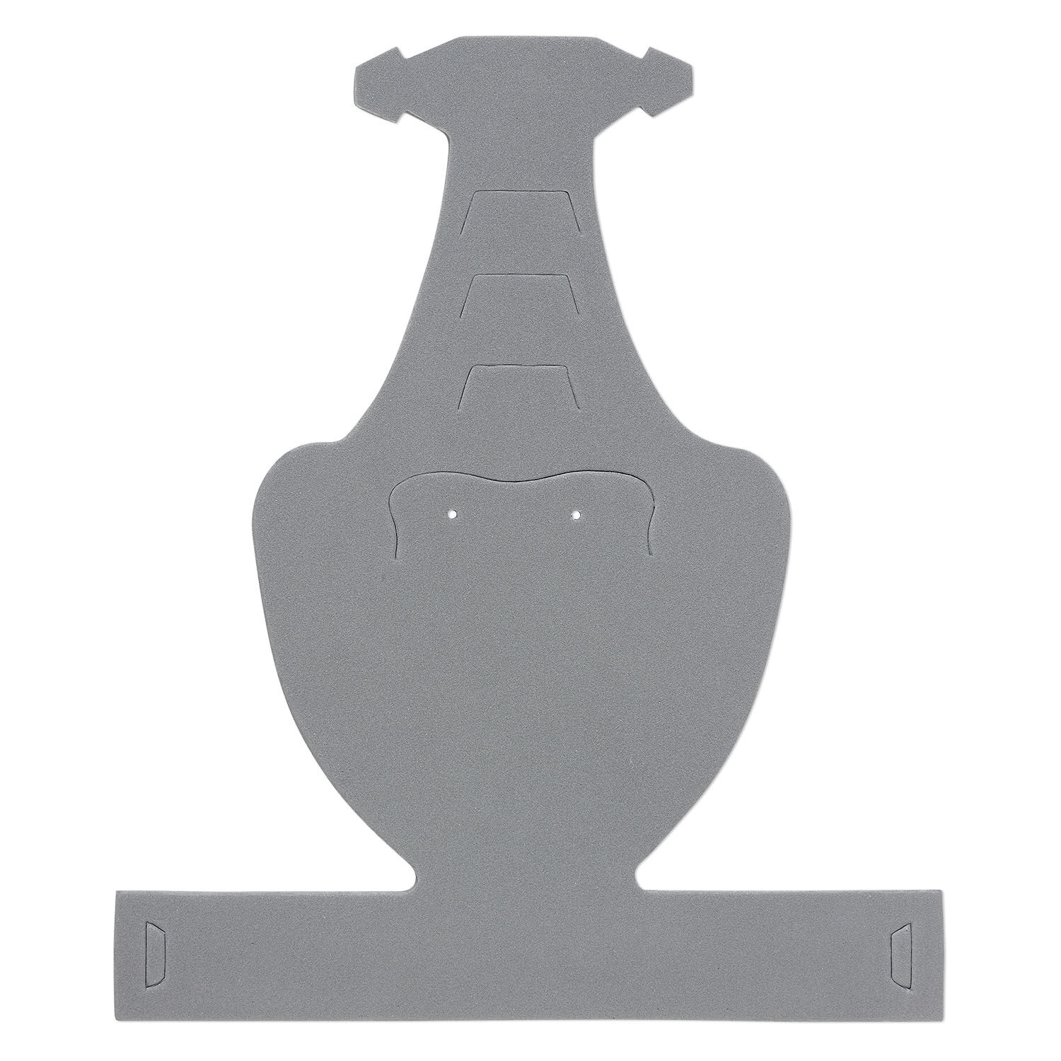 Foam displays have two holes for earrings and are formed and scaled to accommodate medium designs that can include necklaces, bracelets, anklets, pendants and more. Simple and quick tab-and-slot assembly. Measures 10-1/2 x 8-3/4 inches unassembled. Earring hole size may vary slightly.