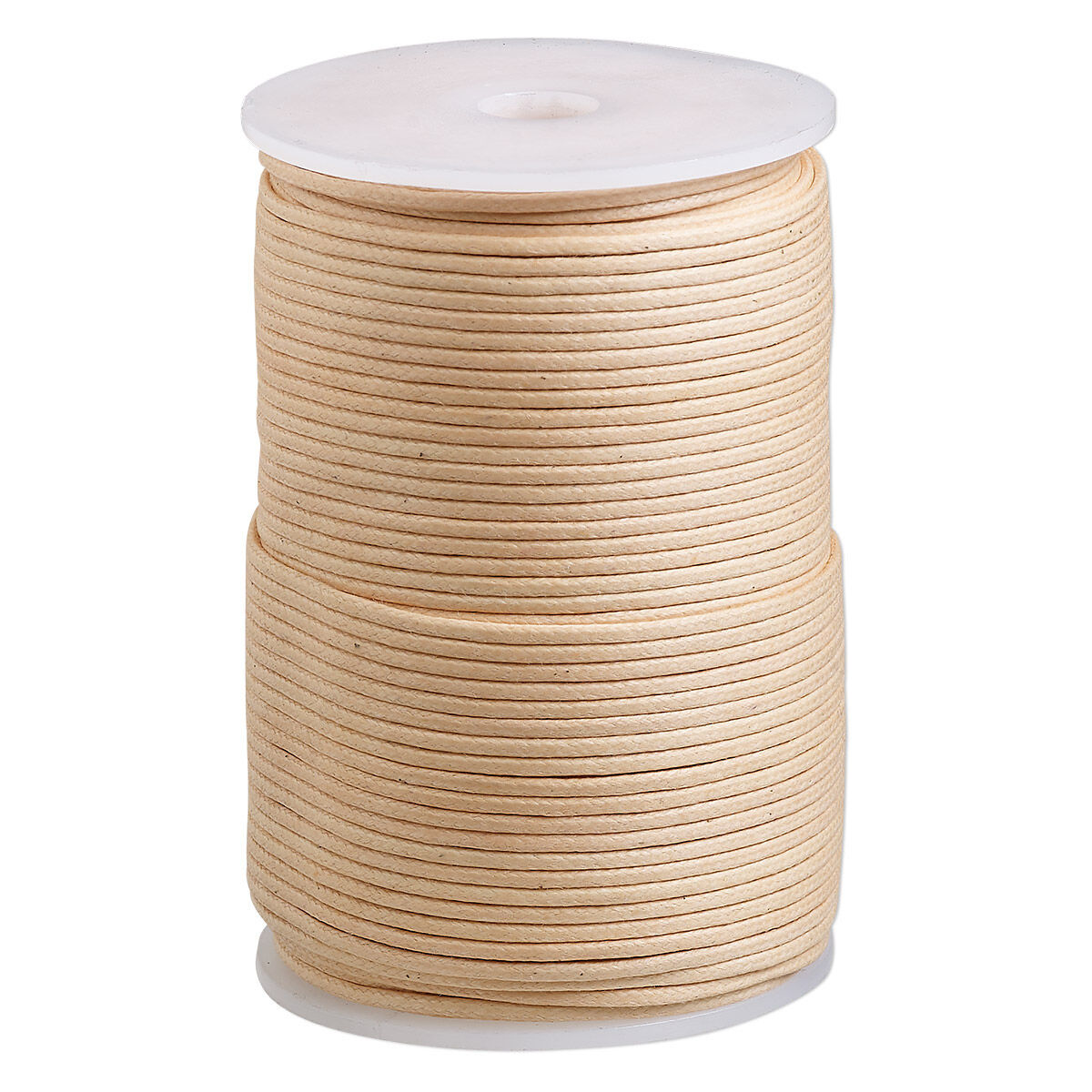 Cord, waxed cotton, natural, 2mm, 50+ pound test. Sold per 100-meter spool.