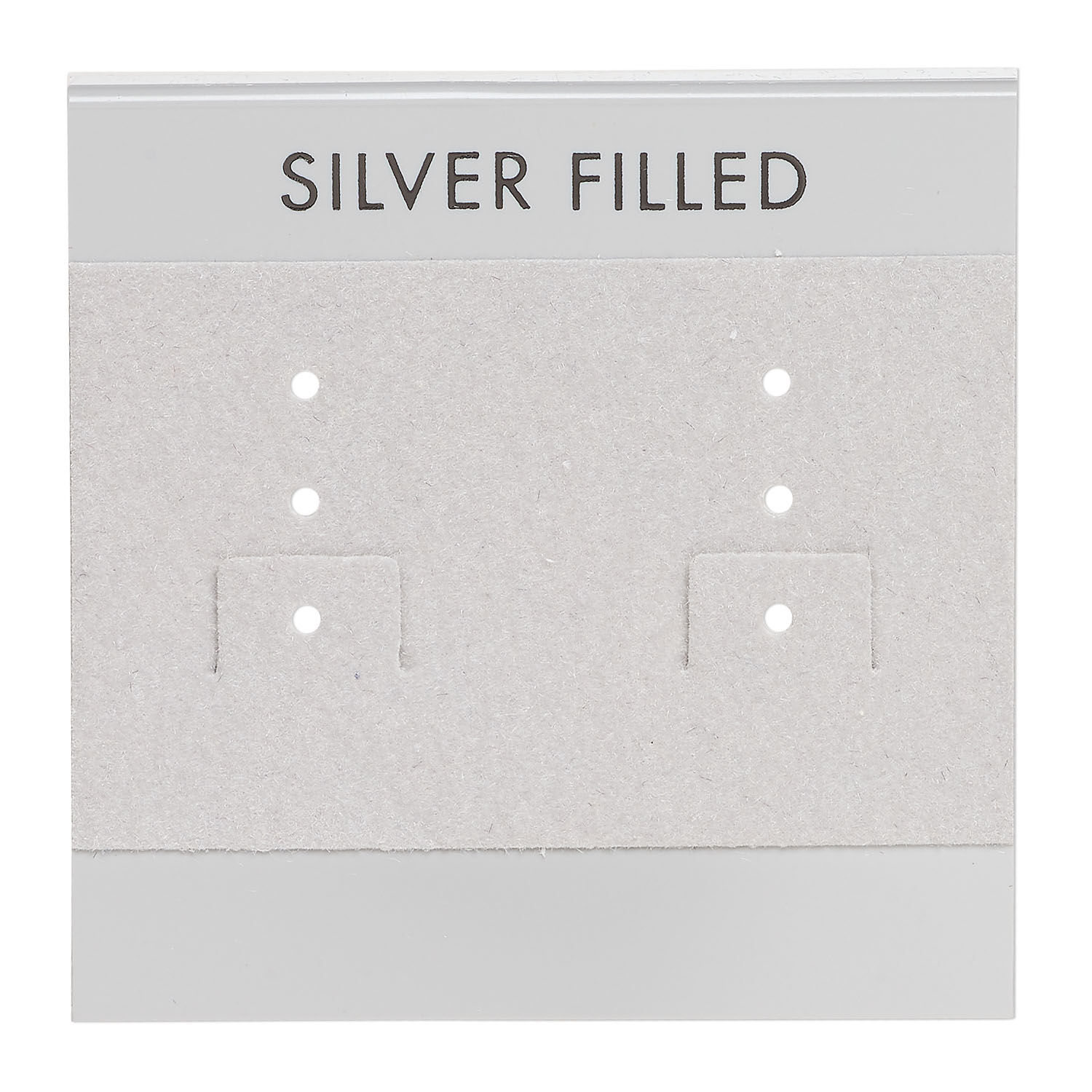 Earring card, flocked plastic, grey and silver, 2x2-inch square with "SILVER FILLED." Sold per pkg of 100.