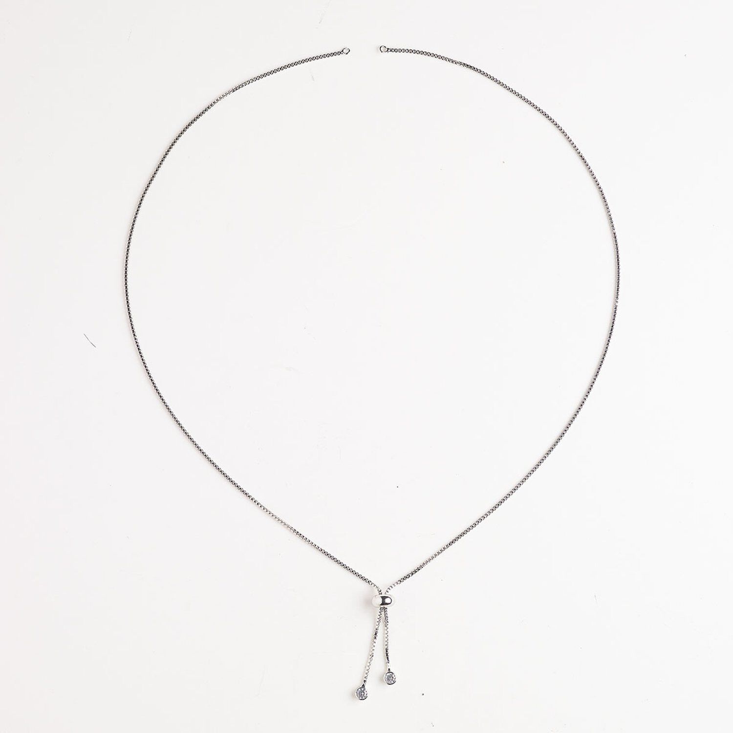 Necklace component, brass / glass / silicone, pkg/16 inches with adjustable slider, 1.3mm box, antique silver finish and clear.