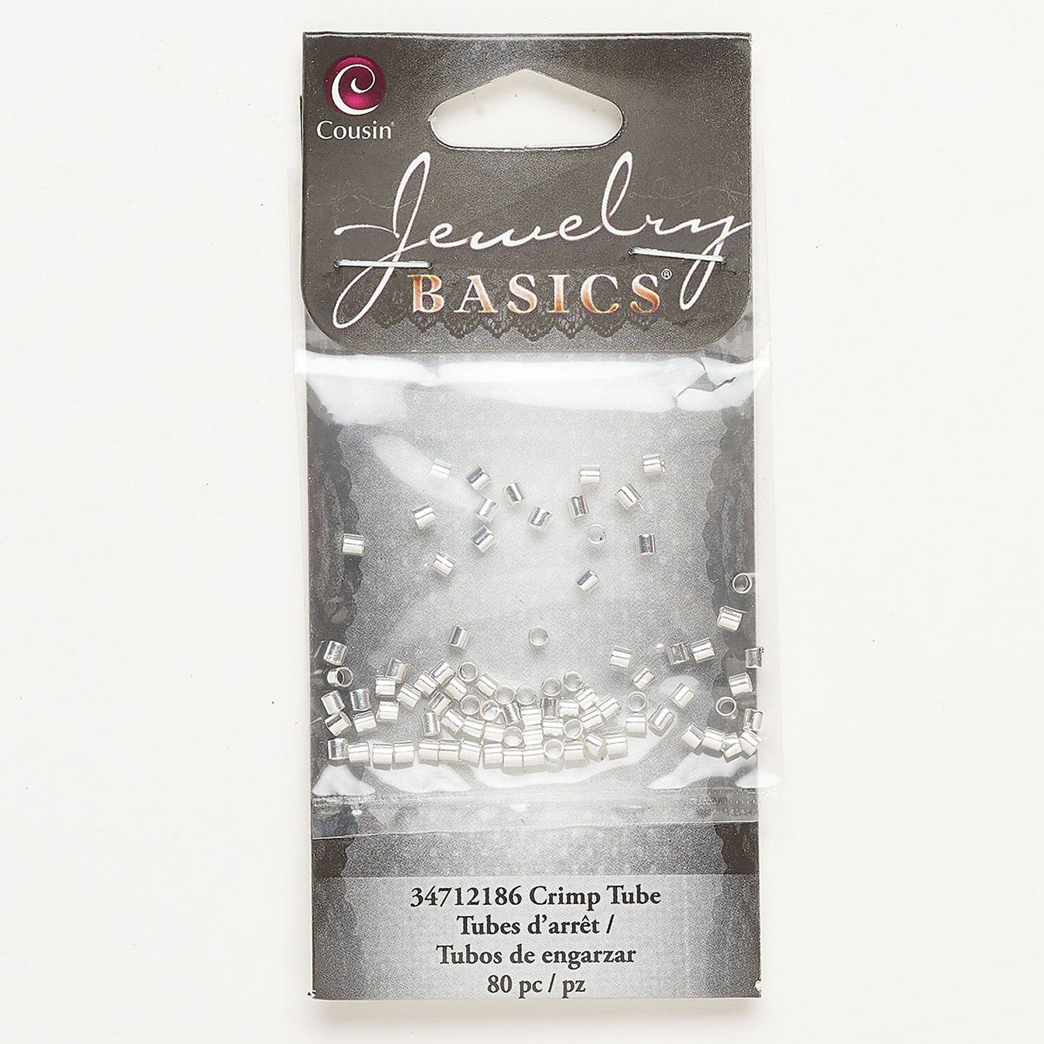 Crimp, brass, pkg/80, silver finish, 2mm tube.