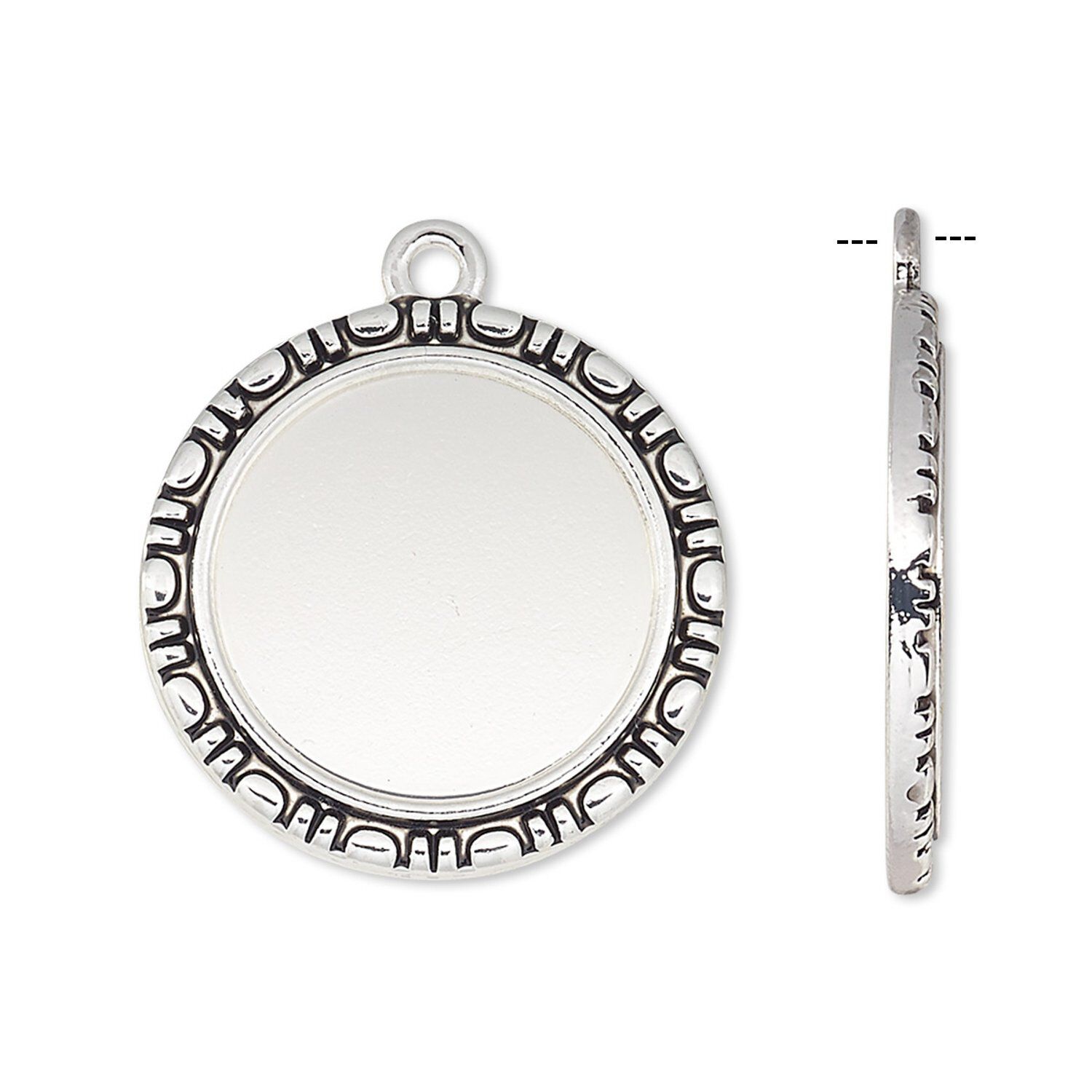 Cast "pewter" (zinc-based alloy) cabochon drop mountings are calibrated to accept an 18mm round cabochon, just bond with E6000® or 2-part epoxy. Mountings can also be filled with Apoxie® Sculpt and polymer clays--or add photos, art clippings or other embellishments under ICE Resin®. Quality casting offers consistent sizes, shapes, finishes, surfaces and metal integrity.
