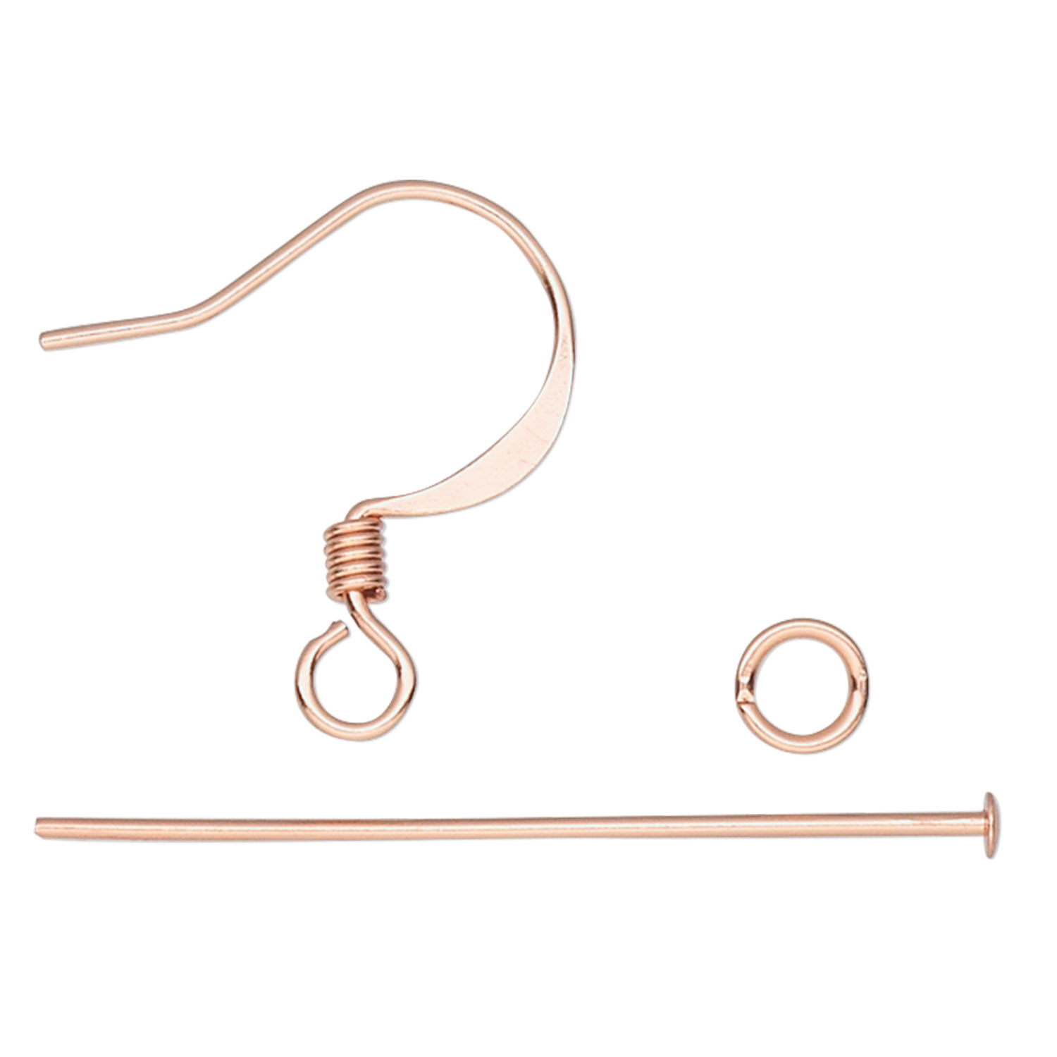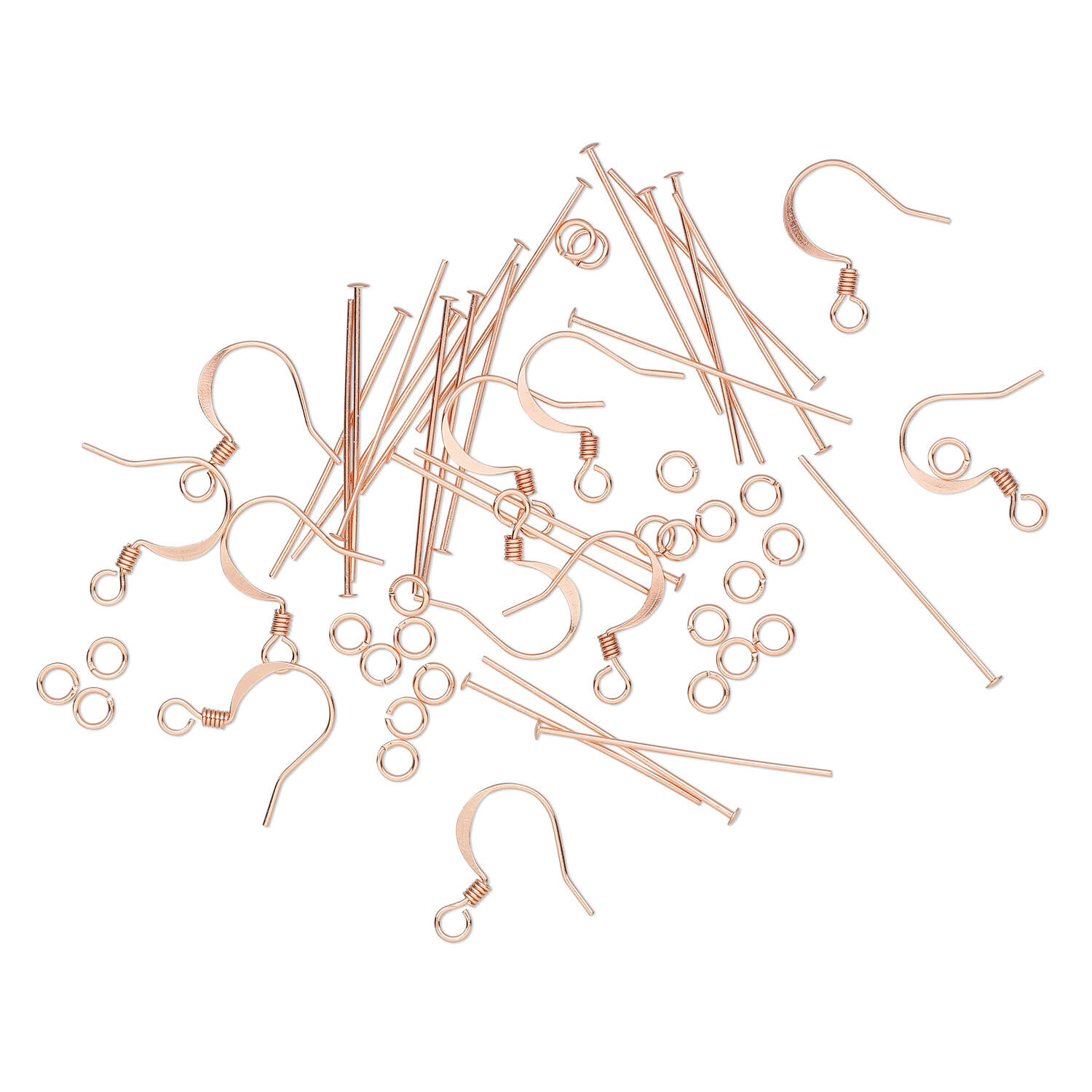 Earring assortment 1pkg60 copper-plated, 16mm fishhook ear wire / 1.125 inch head pin / 4mm jump ring, 22 gauge brass