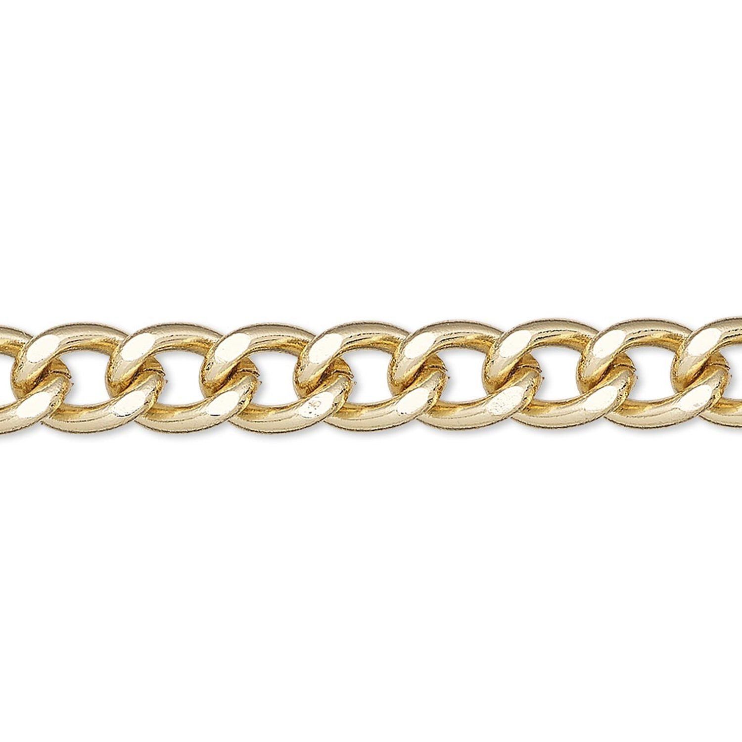 Steel flat curb chain features open links with a shining gold finish--an economical alternative to precious metals and ideal for designing affordable styles.