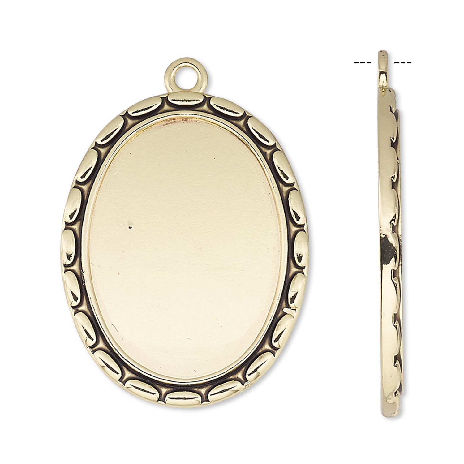 Focal, antique gold-finished "pewter" (zinc-based alloy), 31x24mm oval with oval edge and 25x18mm oval setting. Sold per pkg of 6.