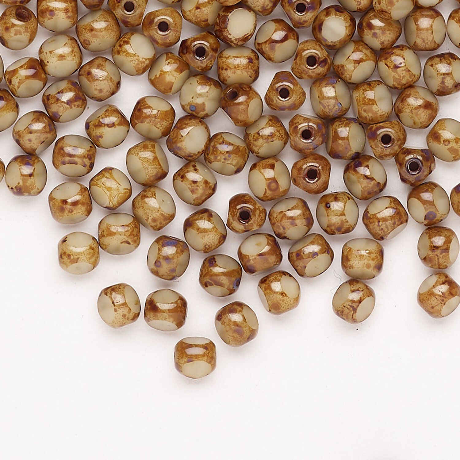 Bead glass 1pk 4mm flat-sided round, opaque brown tan 17 gram