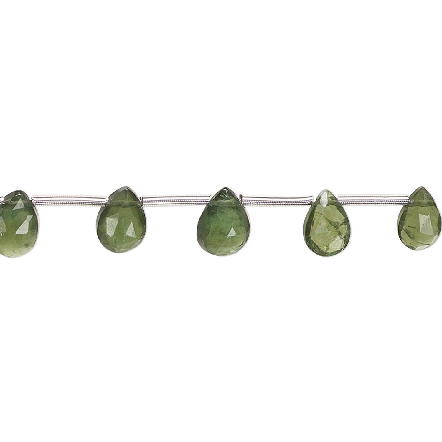 High-quality, semiprecious gemstone green apatite beads are hand-cut to a faceted puffed teardrop. The name comes from the Greek word apate, which means, "to deceive." It could be said apatite had been deceived into allowing itself to be confused with some of the more valuable gems such as tourmaline, olivine, peridot, topaz and beryl. This stone is best used in earrings and a necklace because, with its Mohs rating of 5--comparable to the hardness of teeth, it can be easily scratched. Sizes, shapes and colors may vary with handcrafted items.