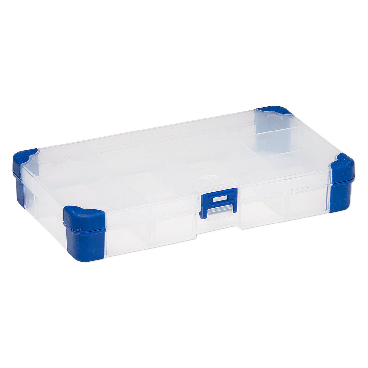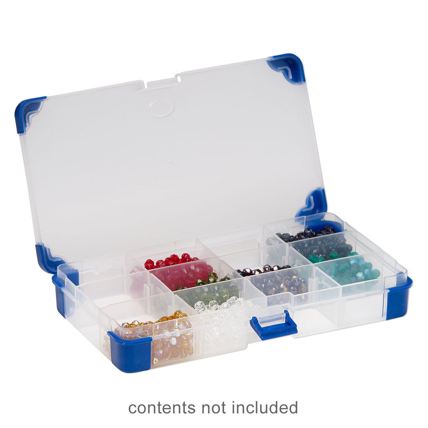 Organizer, acrylic and rubber, clear and blue, 8 x 4-1/4 x 1-1/4 inch rectangle, 5-12 adjustable compartments. Sold individually.