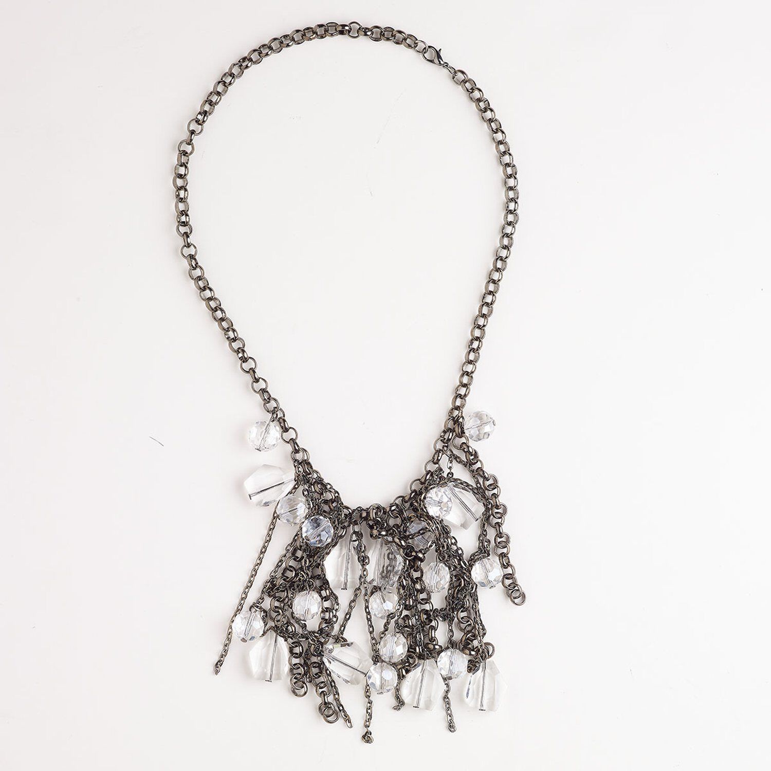 Necklace, steel and glass, pkg/18 inches with lobster claw clasp and 4-inch dangle, gunmetal finish and clear.