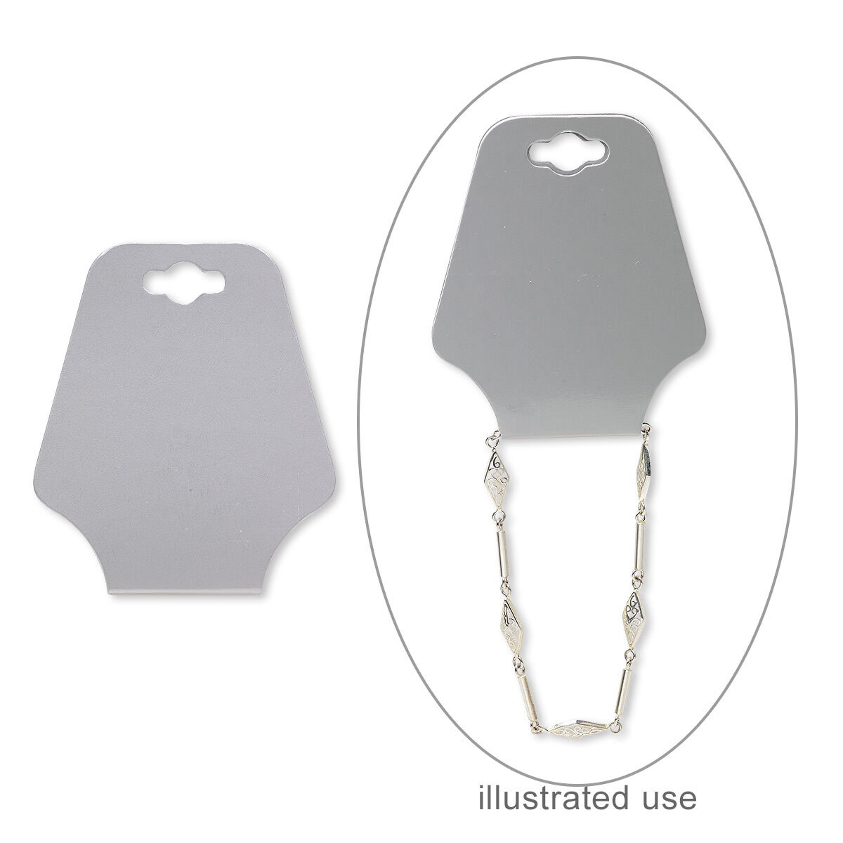 Necklace / bracelet card, adhesive and card stock, silver, 2-1/2 x 2 inches assembled. Sold per pkg of 10.