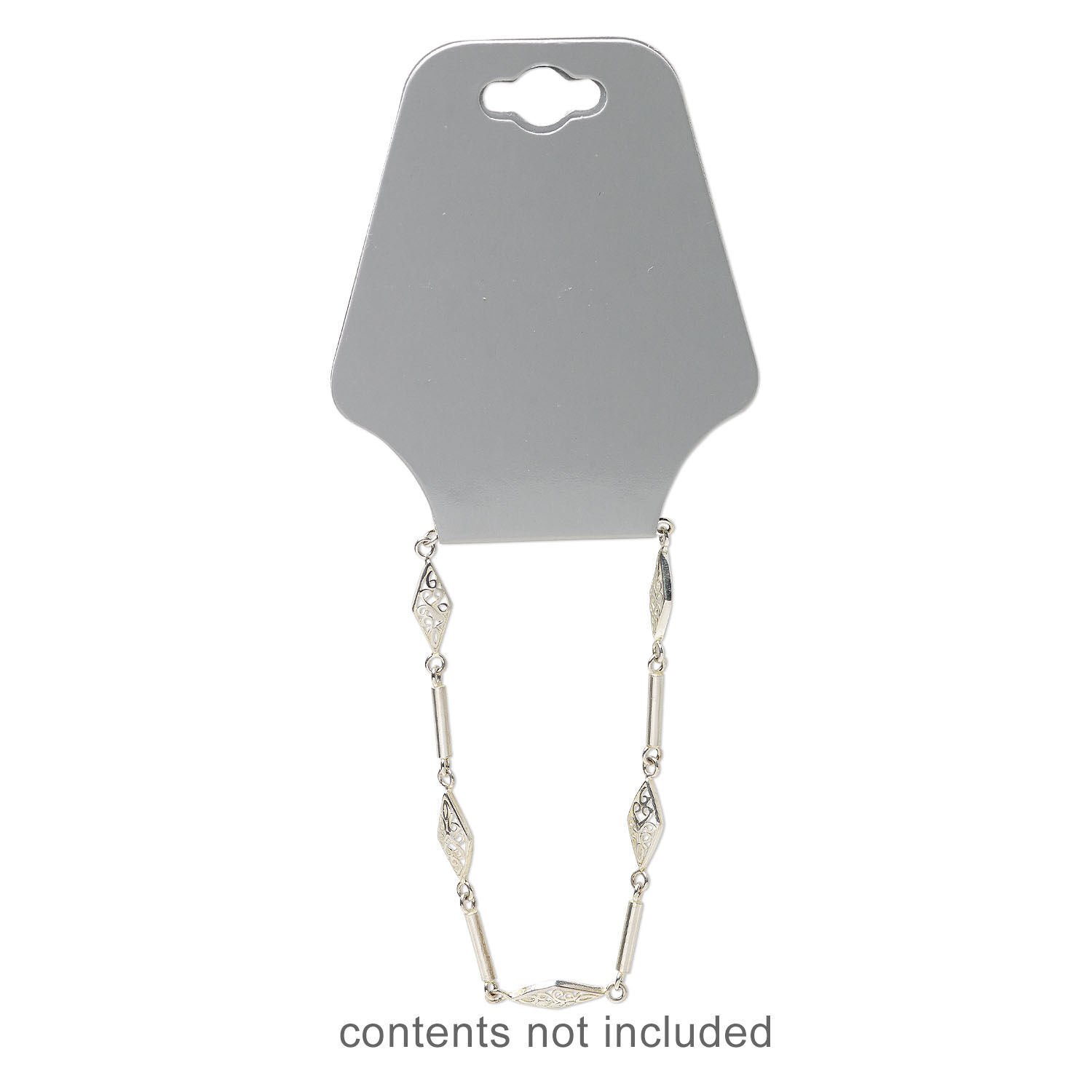 Necklace / bracelet card, adhesive and card stock, silver, 2-1/2 x 2 inches assembled. Sold per pkg of 100.
