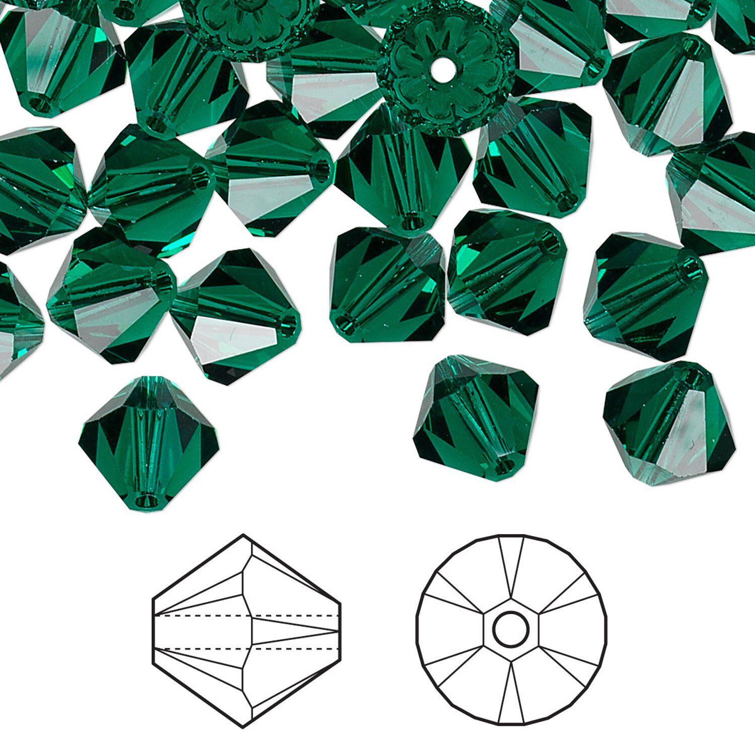 Bead 288pk emerald, Swarovski® 8mm XILION bicone 5328