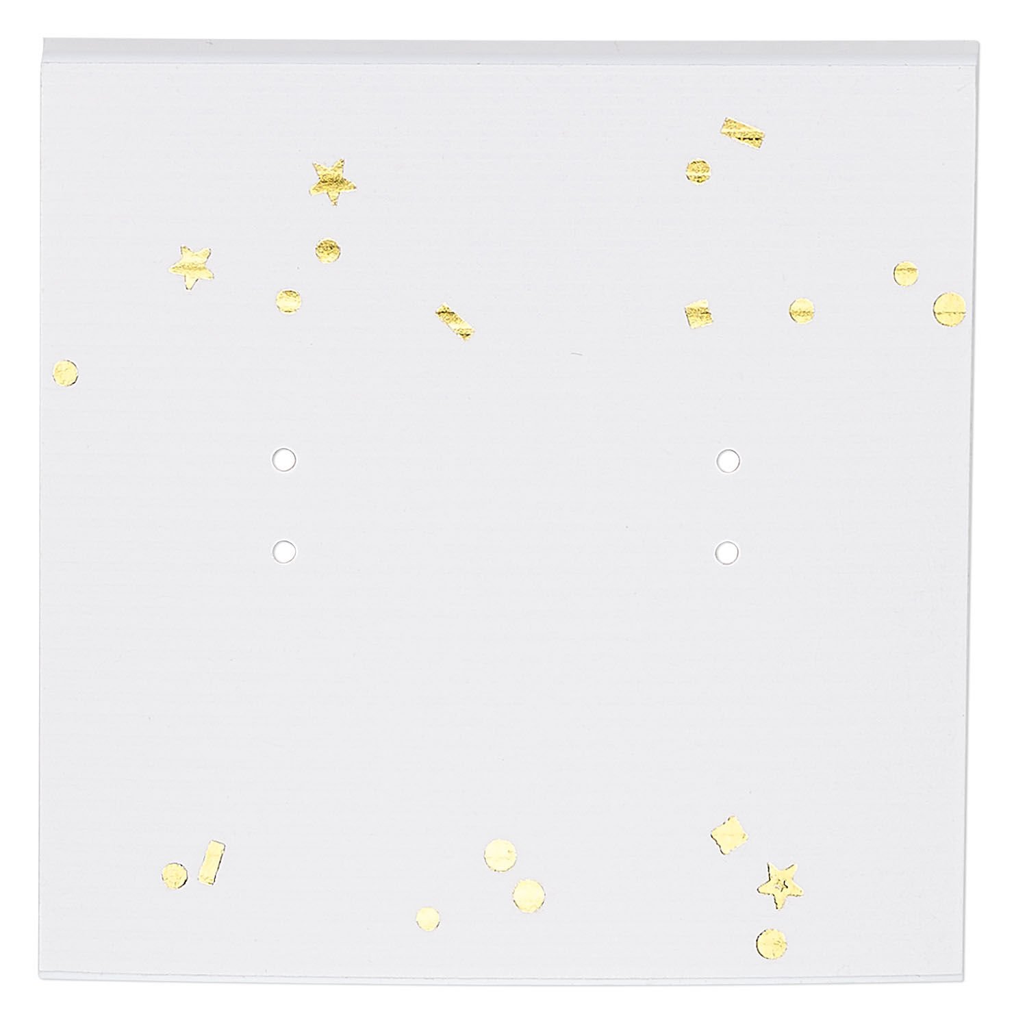 Earring card, paper, white with gold-colored confetti, 2x2-inch square. Sold per pkg of 100.