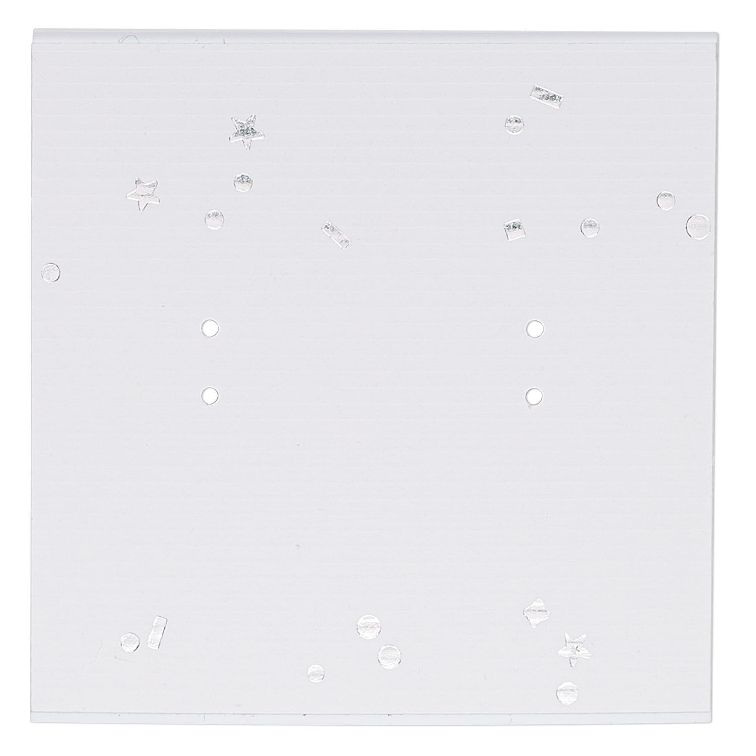 Earring card, paper, white with silver-colored confetti, 2x2-inch square. Sold per pkg of 100.