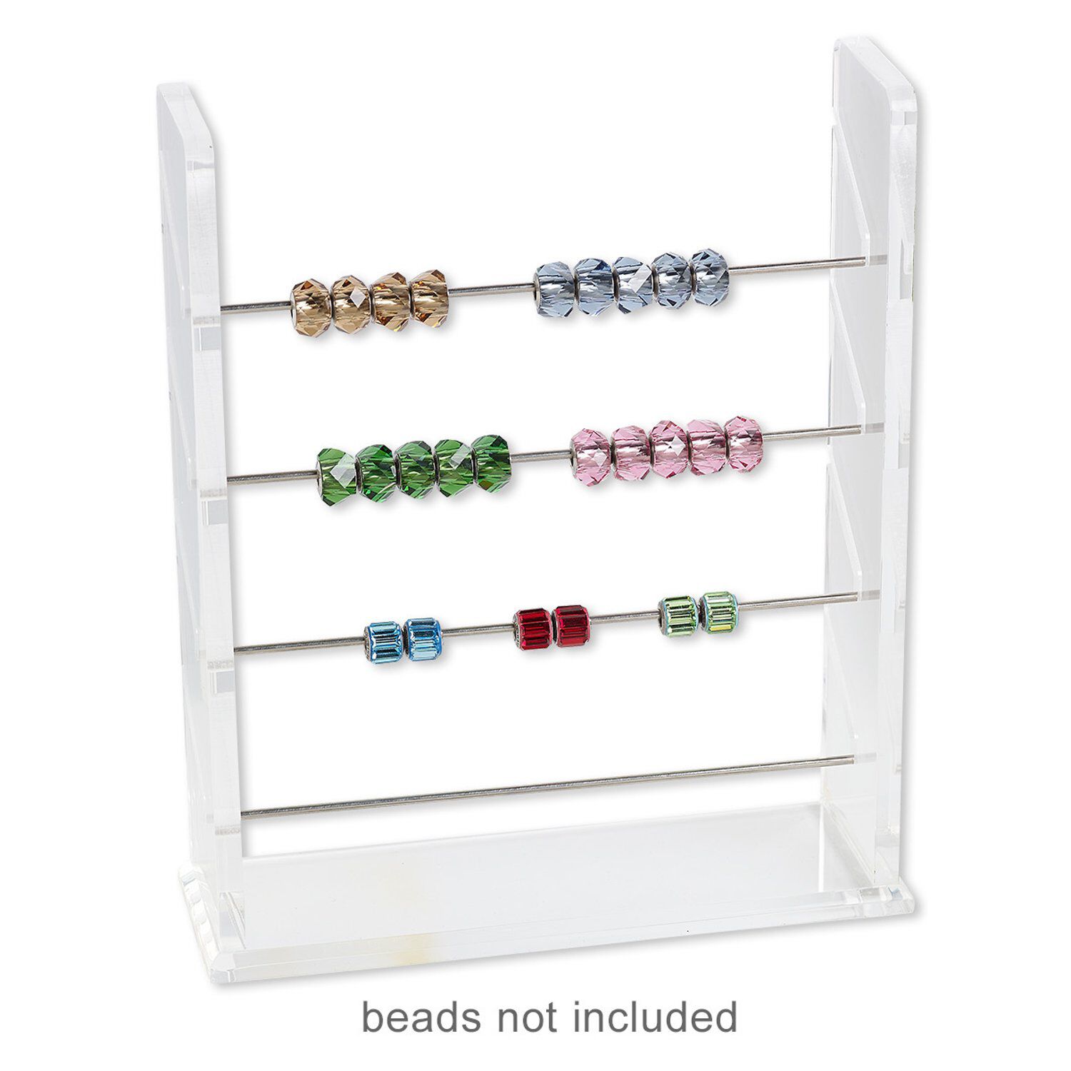 Show off your beads! Display the beads you make--or the beads you resell--with this clear acrylic display. Capable of holding 40-60 beads (depending on size), it's as attractive as it is practical. Use it for point-of-purchase sales, bead collections or storage. Bead rack includes four removable and reusable 6-1/4 inch stainless steel rods. Rods can accept beads with hole sizes 4mm or larger.