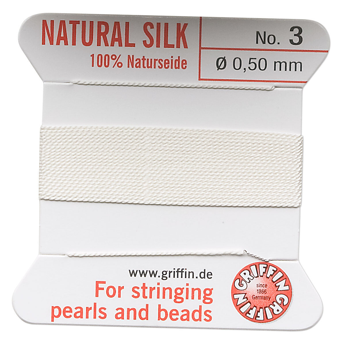 Thread, Griffin, silk, white, size #3. Sold per 2-meter card (approximately 78 inches).