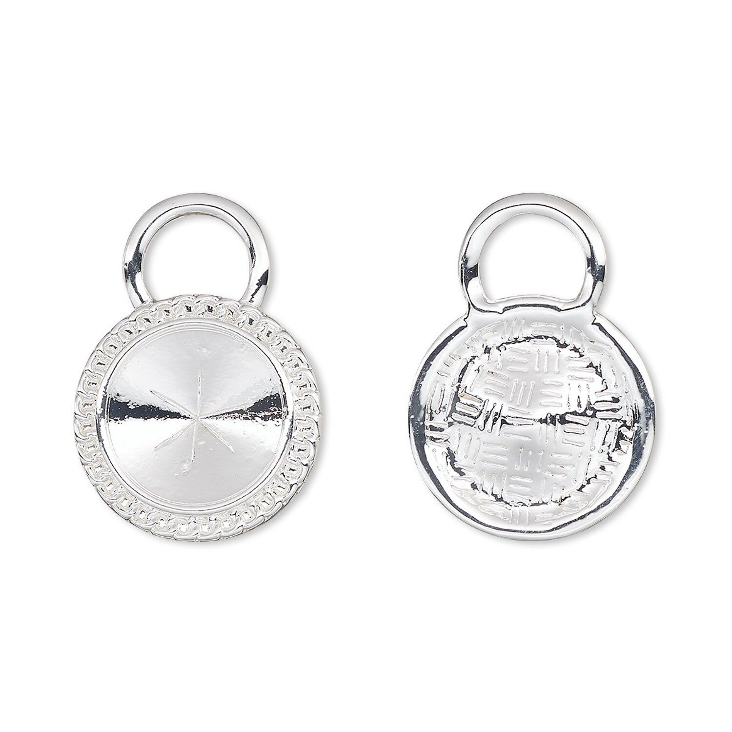 Drop, Almost Instant Jewelry®, silver-plated "pewter" (zinc-based alloy), 20mm round with rope edge and 14mm rivoli setting. Sold per pkg of 2.