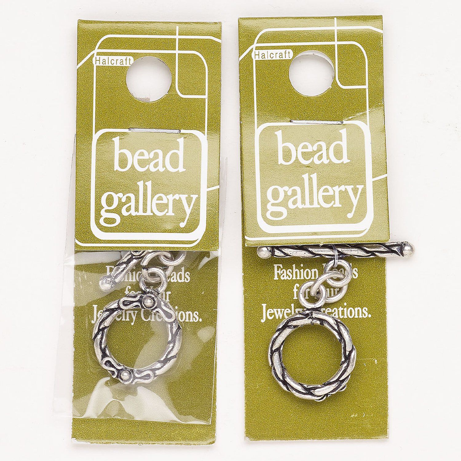 Clasp toggle 1pkg2 "pewter" (zinc alloy), 17mm round, antique silver-finished 1-strand