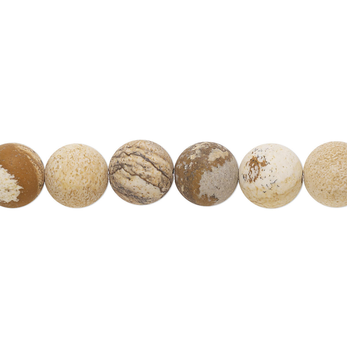 Picture jasper 1pkg1, matte round bead natural 8 inch 8mm