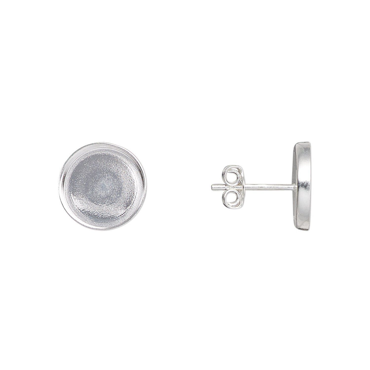 Sterling silver-filled earstuds offer jewelry makers the look and wearability of sterling silver without the price. These easy-to-set earstud mountings fit 10mm round cabochons in whatever material the customer prefers. Earnuts included. Earstuds have an anti-tarnish coating.