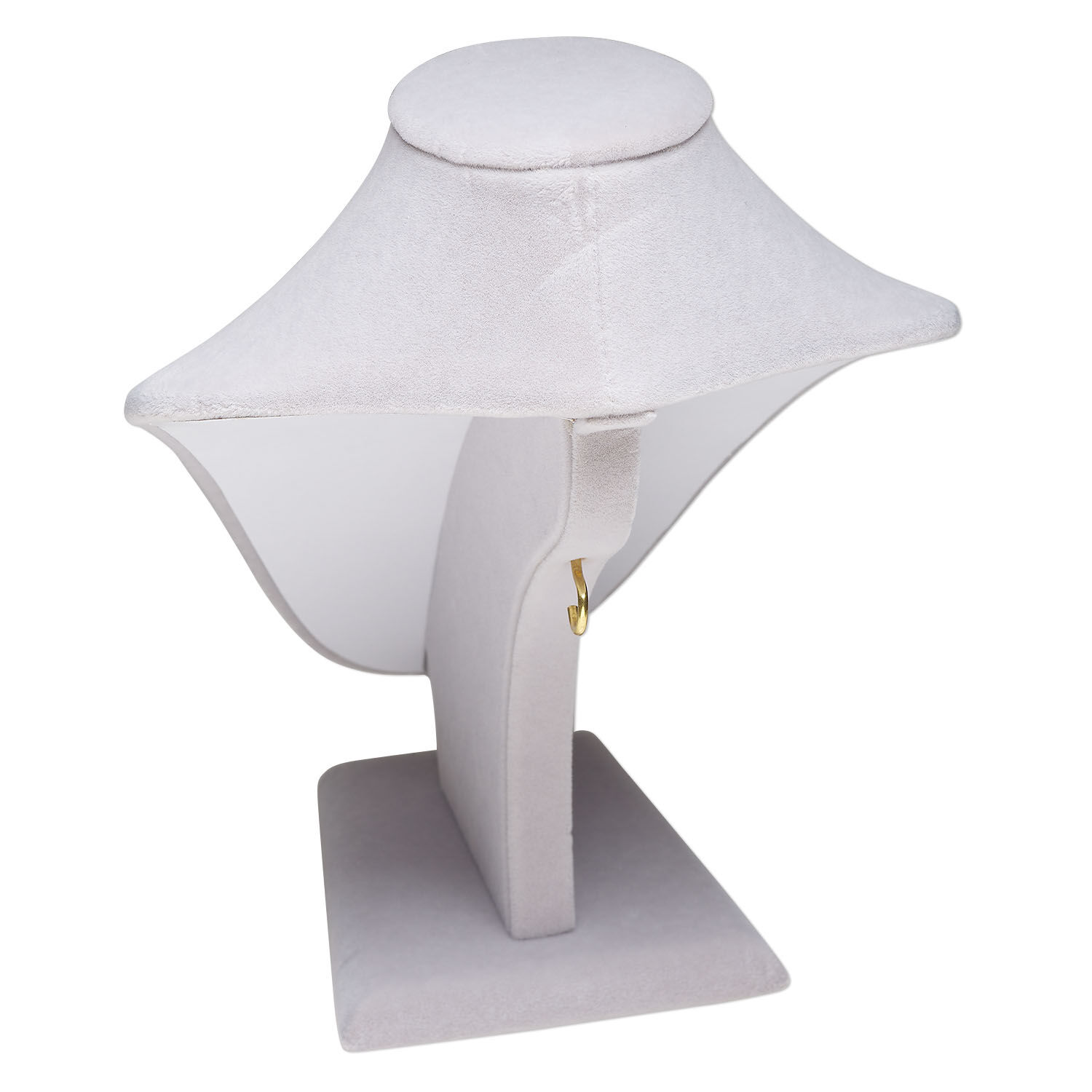 Display, necklace, velveteen and steel, grey, 9 x 7 x 5 inches. Sold individually.