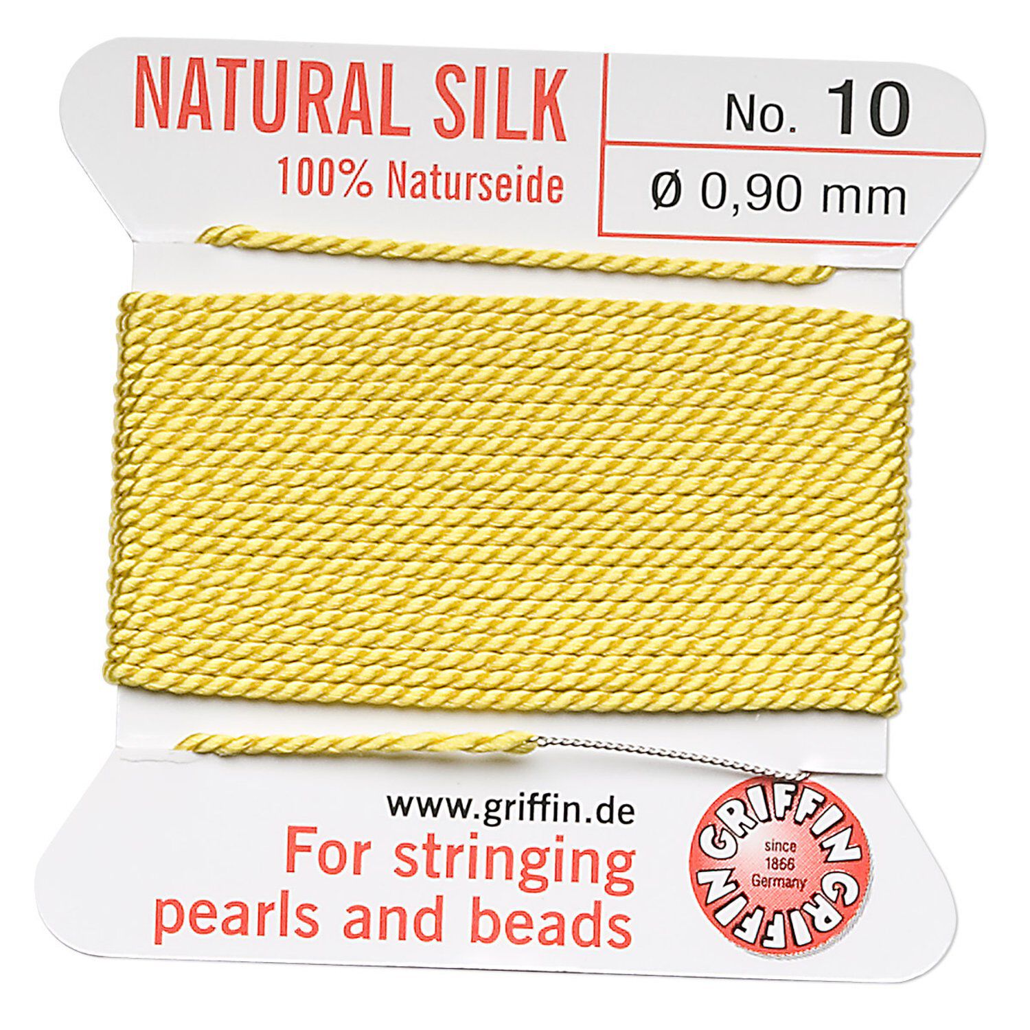 Thread, Griffin, silk, yellow, size #10. Sold per 2-meter card (approximately 78 inches).
