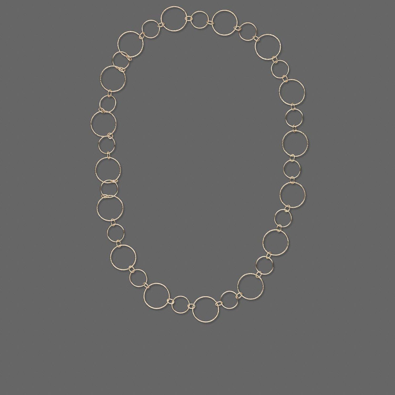 Necklace, 14Kt gold-filled, 21mm textured round and 14mm smooth round linked with 6x4 smooth oval, 24-inch continuous loop. Sold individually.