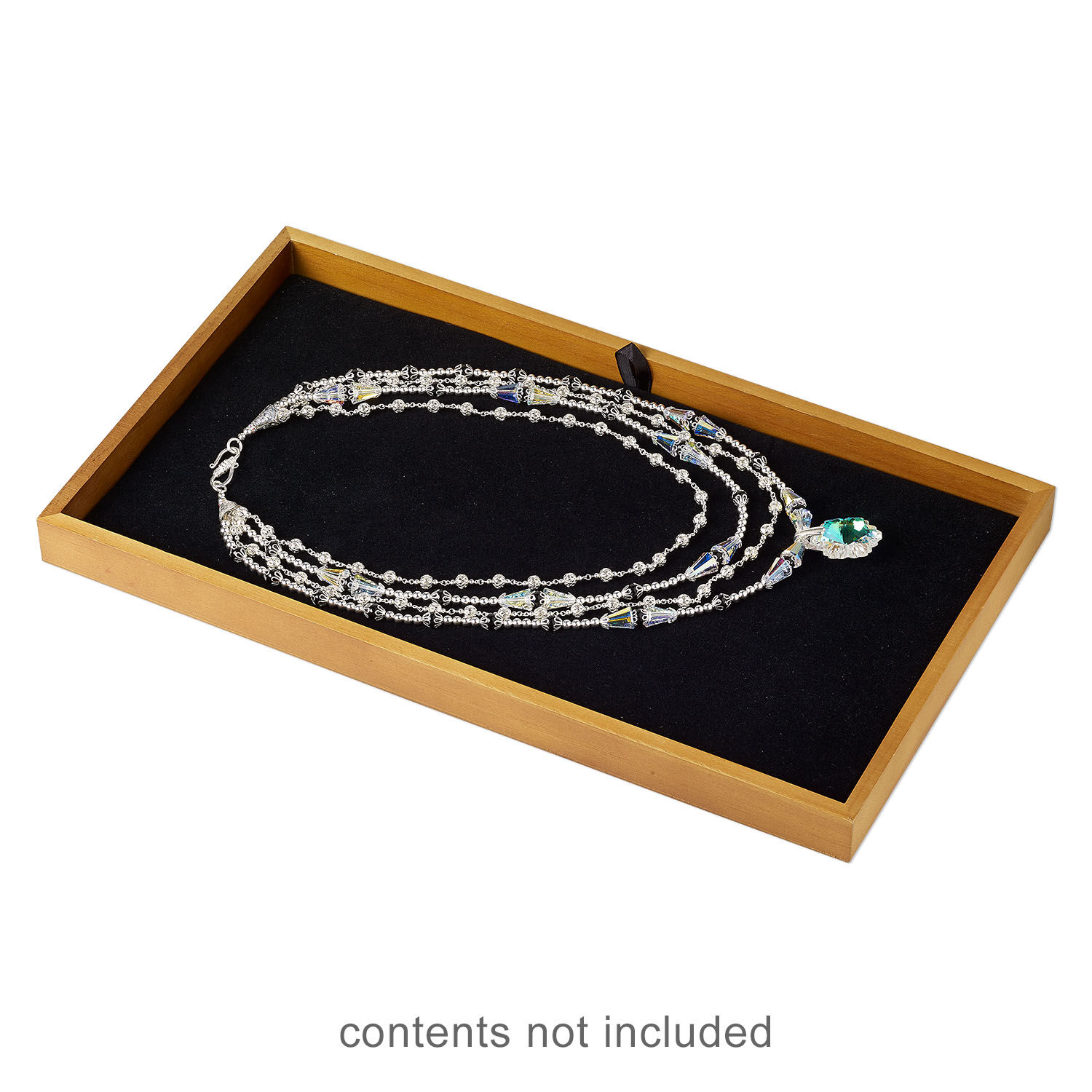 Present jewelry in this attractive wood display tray. Made from pine and stained a light oak color, this tray is lightweight and economical--ideal for shows or use in a retail setting. For a touch of flair, embellish tray with crystals, paint or more.